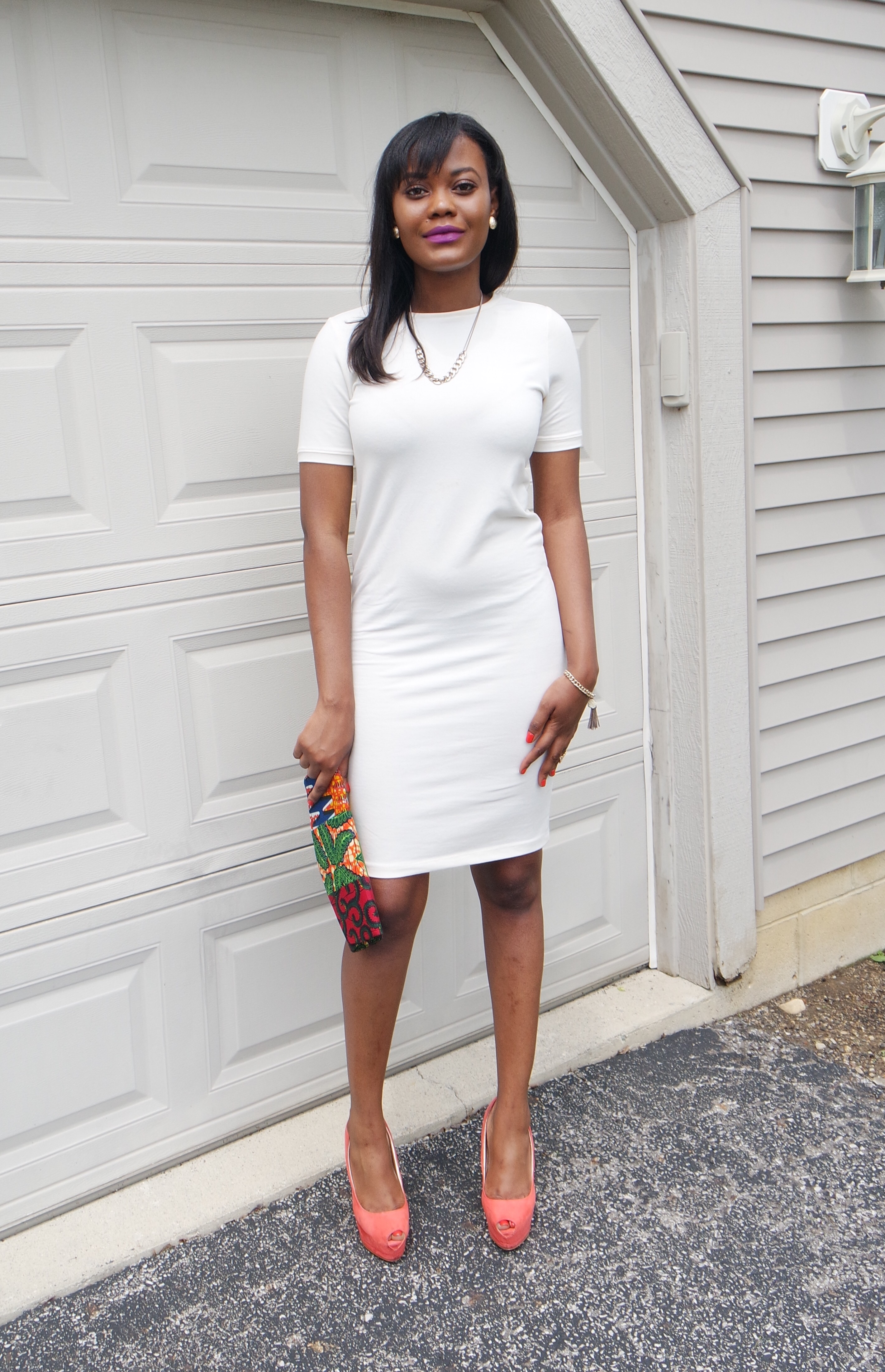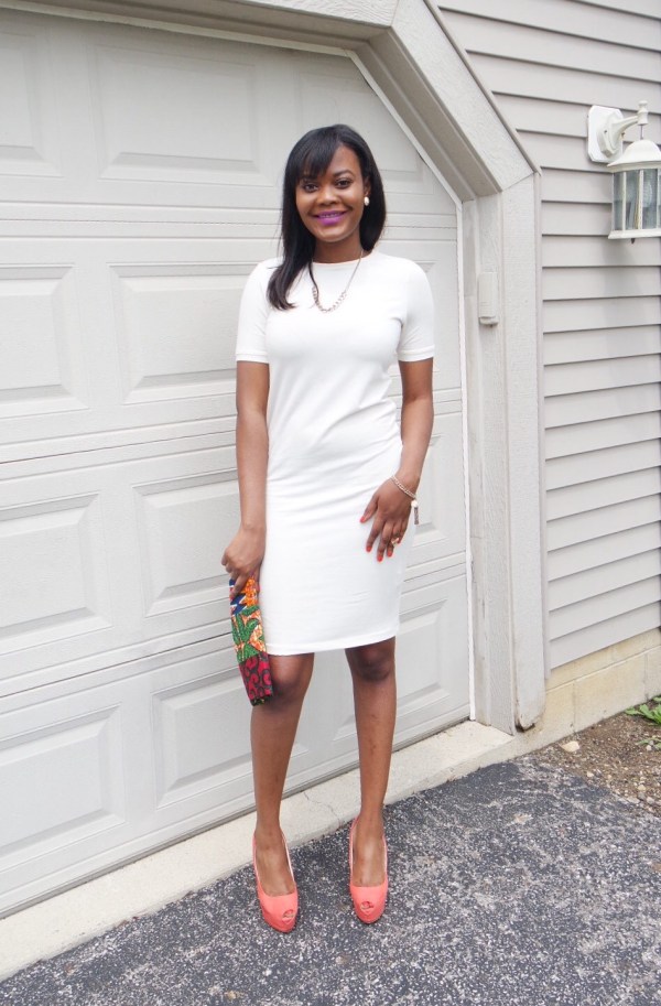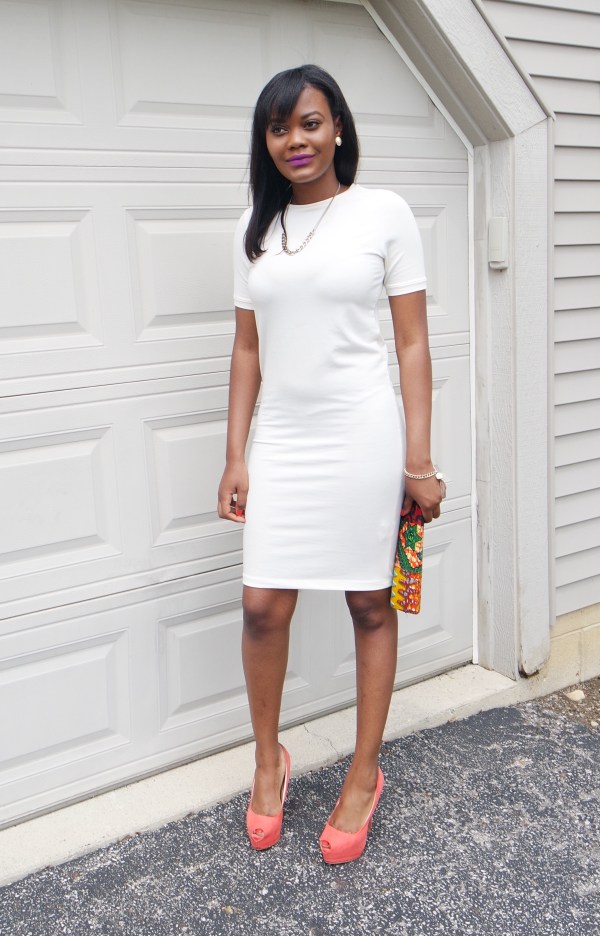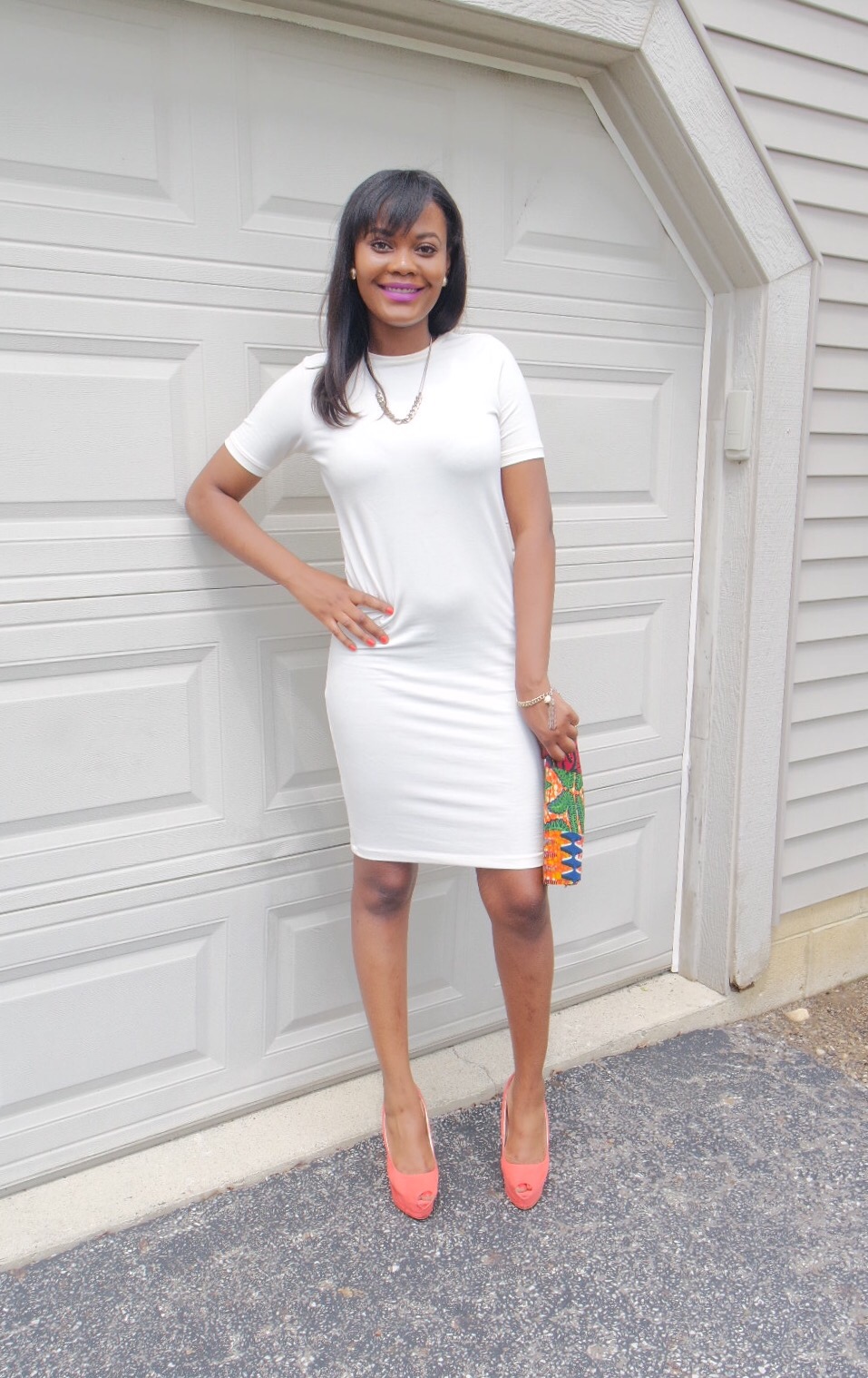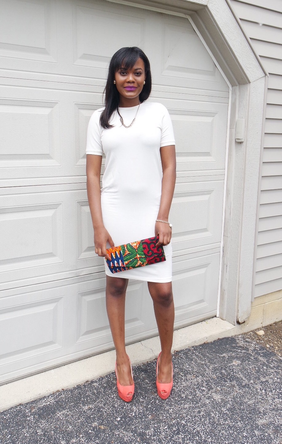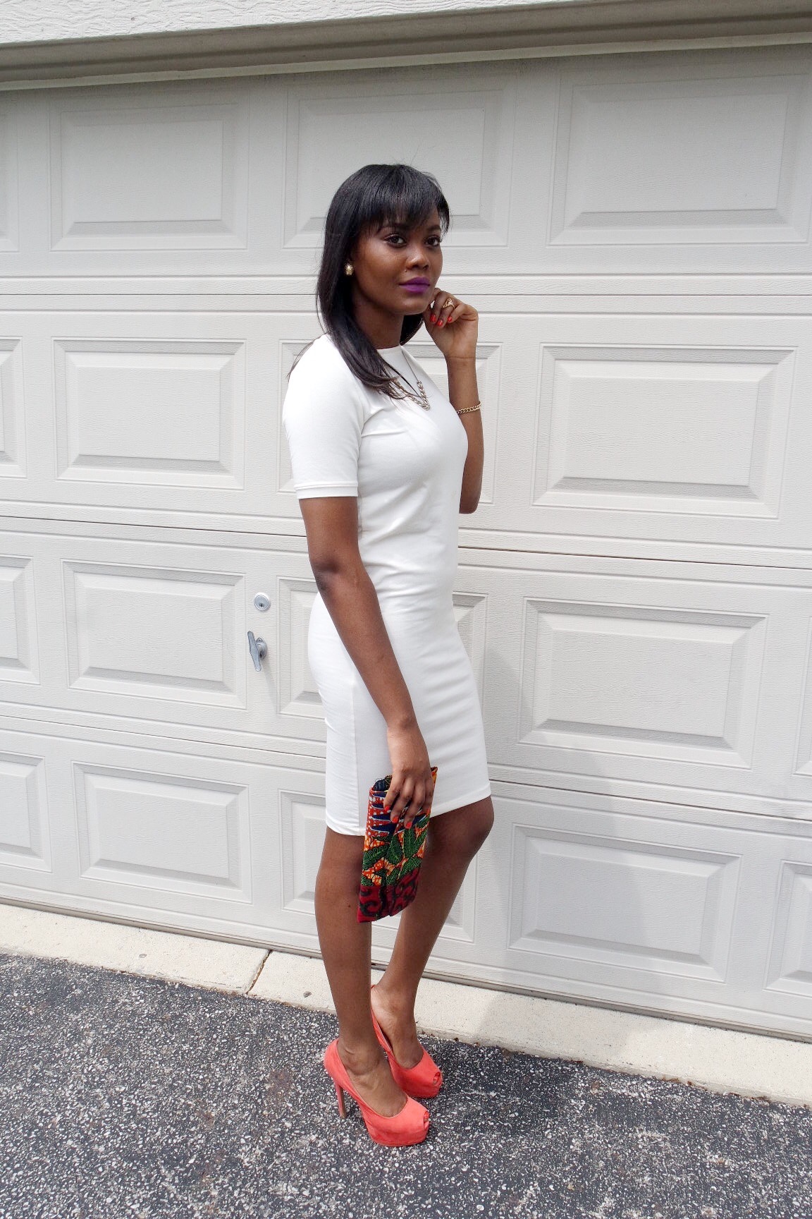 So this Saturday something happened that really hurt me. After sitting in the mall with my head down, a random girl walked by and said “Hey Beautiful” then gave me a hug.  This act of kindness made my night but unfortunately, it didn’t carry on to the following morning. I wasn’t in the best mood Sunday morning for church, so I thought I’ll go dress down with a more simple look. I put on a plain bodycon dress and dressed it up with coral heels, an ankara purse and a necklace. Because the dress was white I added some color to it with my heels, purse and Mac lipstick (Heroine). I walked into church with this simple, dress down look and surprisingly I received a lot of compliments. Someone I haven’t talked to in a while even texted me saying I “looked nice, angelic in a way”.  Even though this was just a little text, it meant something to me, it helped me push through and enjoy the church service.