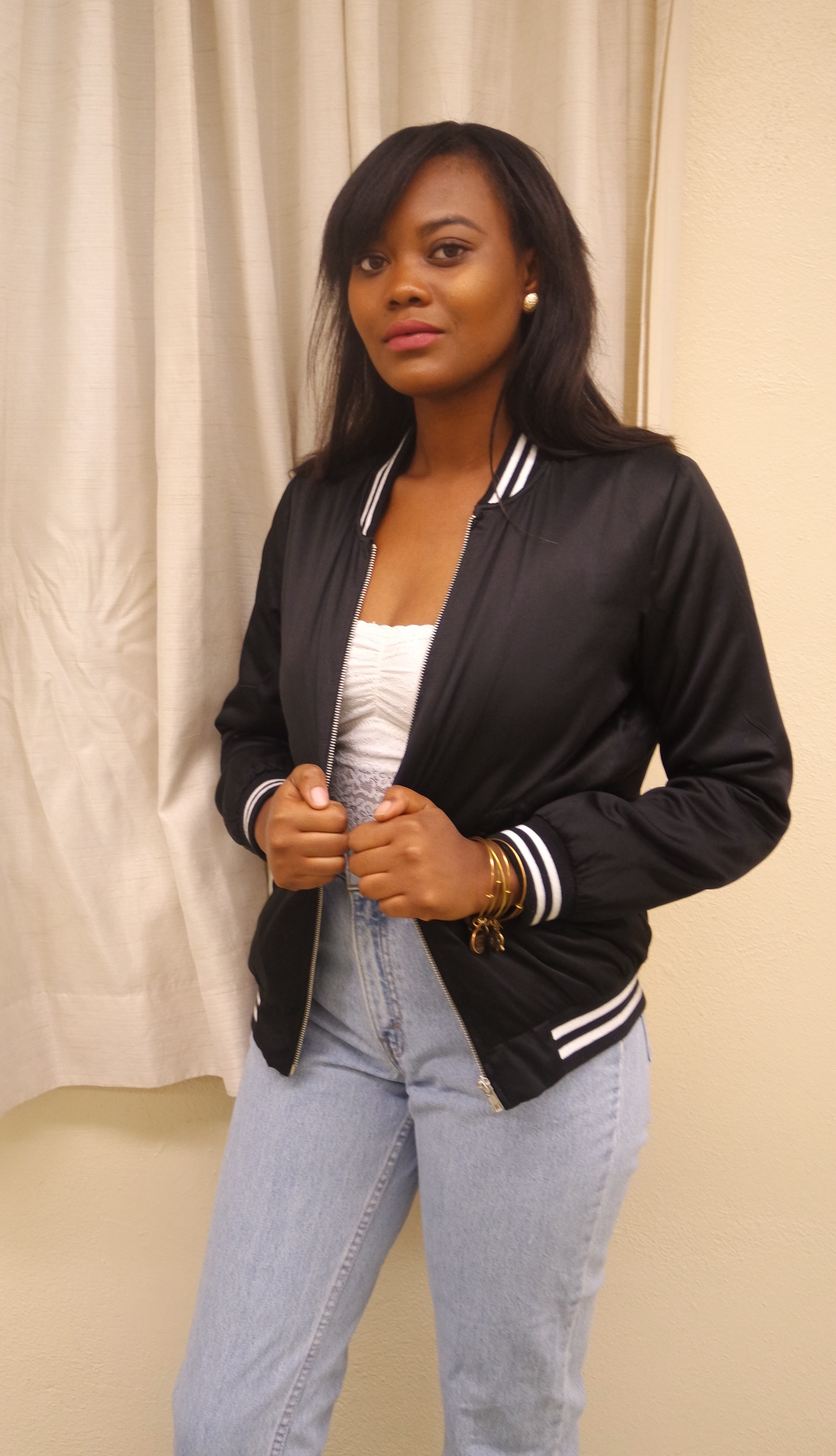 As much as I loved my Kelly Kapowski costume, it is way too cold in Ohio to be walking around like this. I paired it with my bomber jacket and surprisingly I came up with a whole new costume. It reminded me of athletes in 90s shoes with their varsity jackets and old fashion jeans. Varsity jackets were big back in the day and as bomber jackets have made a comeback, I’ve noticed people DIY their jackets into varsity jackets. This look another casual outfit that is based on trendy pieces, old blue jeans and bomber jacket are making a comeback.