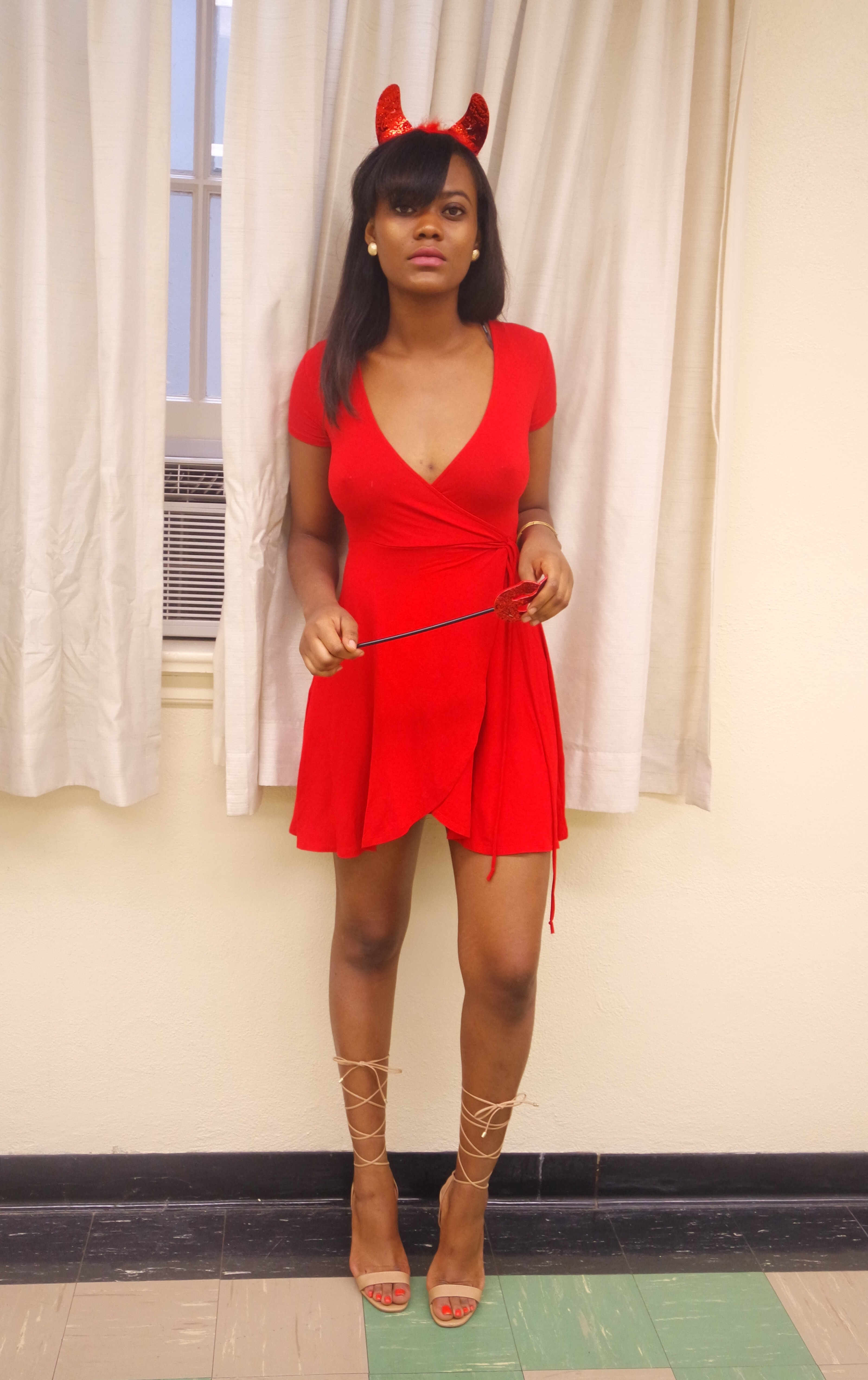 As religious as I am, I know this lovely dress is perfect for a sinful night. I thought I’ll step out of my comfort zone and I’m obsessed. I bought this red wrap dress from Forever21 and paired it with devil ears from Walmart. This costume was so easy to put together and trust me I got the attention of everyone I walked passed.