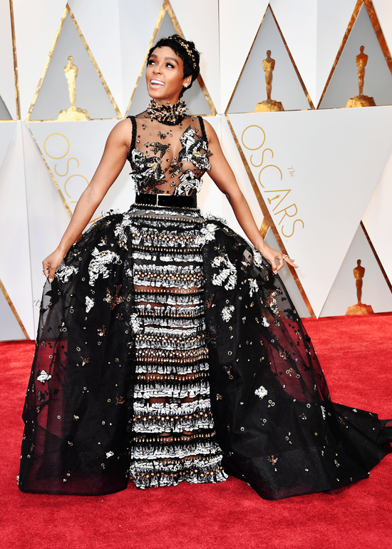3. Janelle Monae of “Hidden Figures” and “Moonlight” has had quite a year. Her first two movies Moonlight and Hidden Figures were nominated for Golden Globes and the Oscars and both were amongst the winners. Janelle is wearing a dramatic Elie Saab gown, she truly looks like the queen she is.