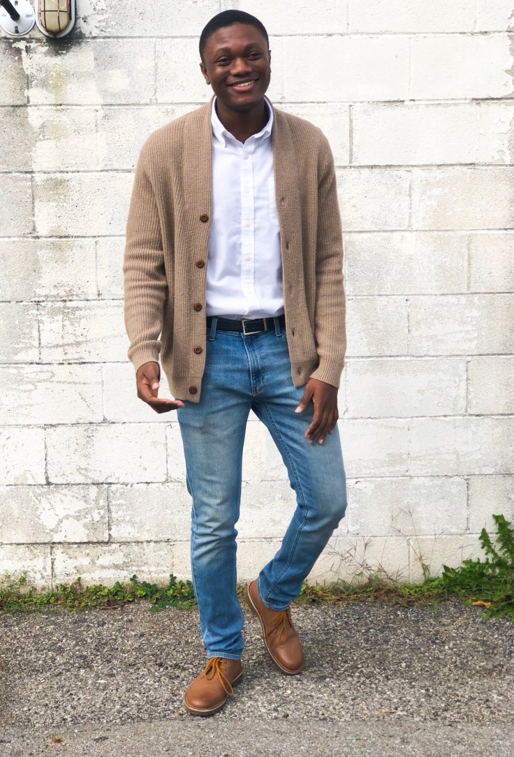 Less is more right? Naturally stylish, dressing well is a skill, his skill! Every morning, he chooses pieces and enhances them to fit his simplicity. Instead of wearing a necktie for the fun of it, his style is manly enough without it. He’s in traditional light blue jeans, paired with the perfect men’s footwear. Shirt free of stains and wrinkles, his style is ready at all times.