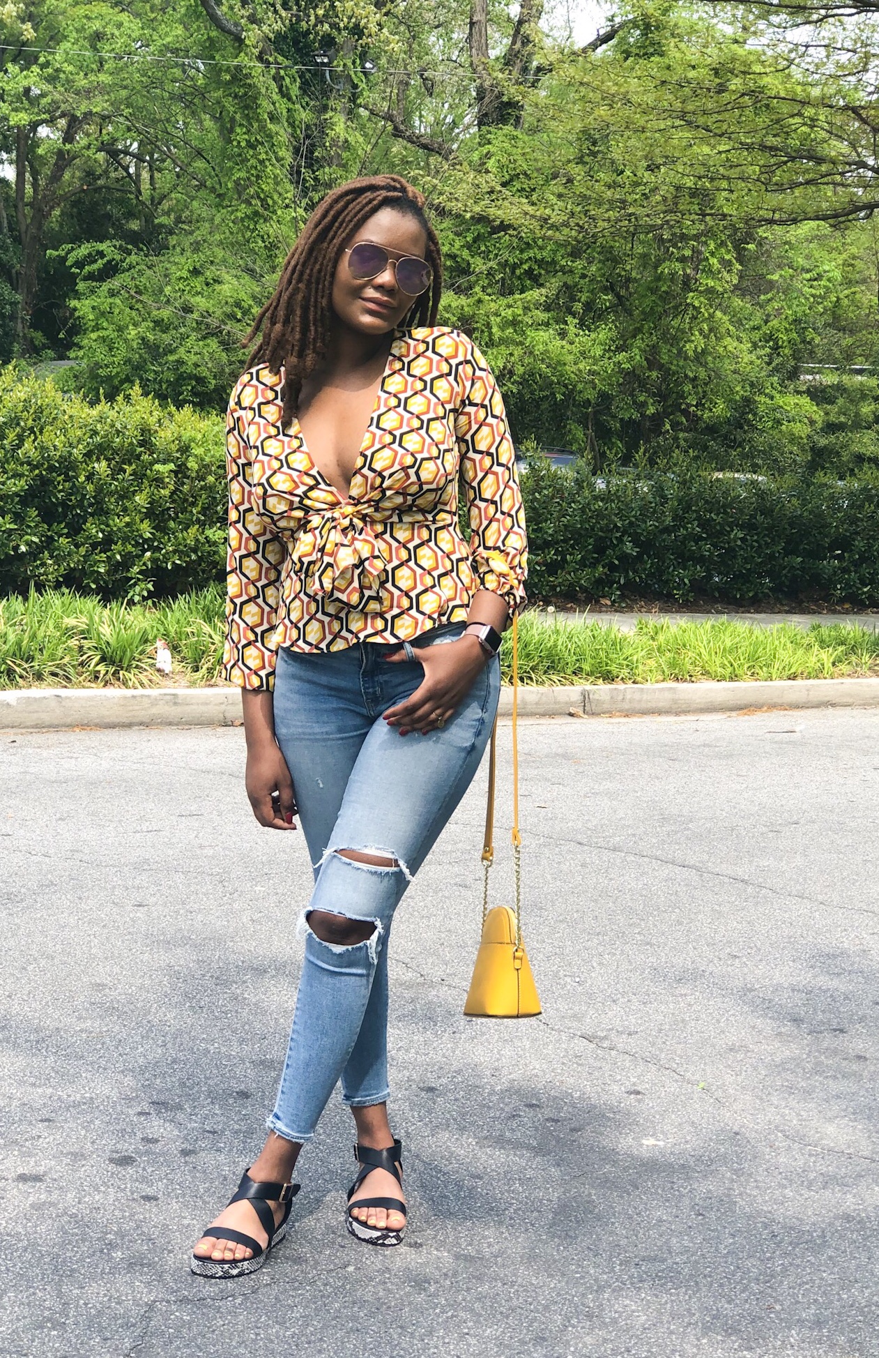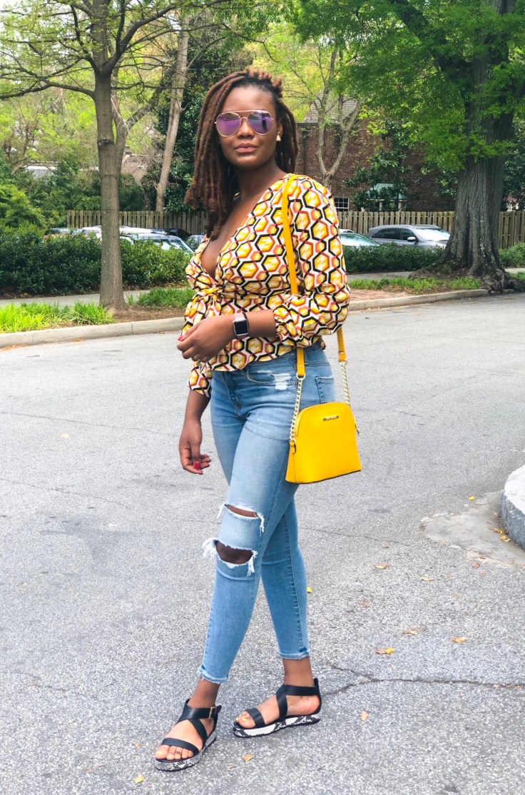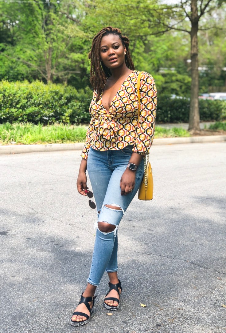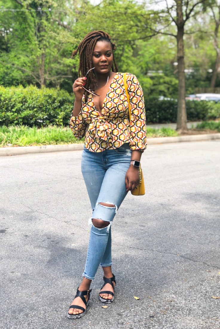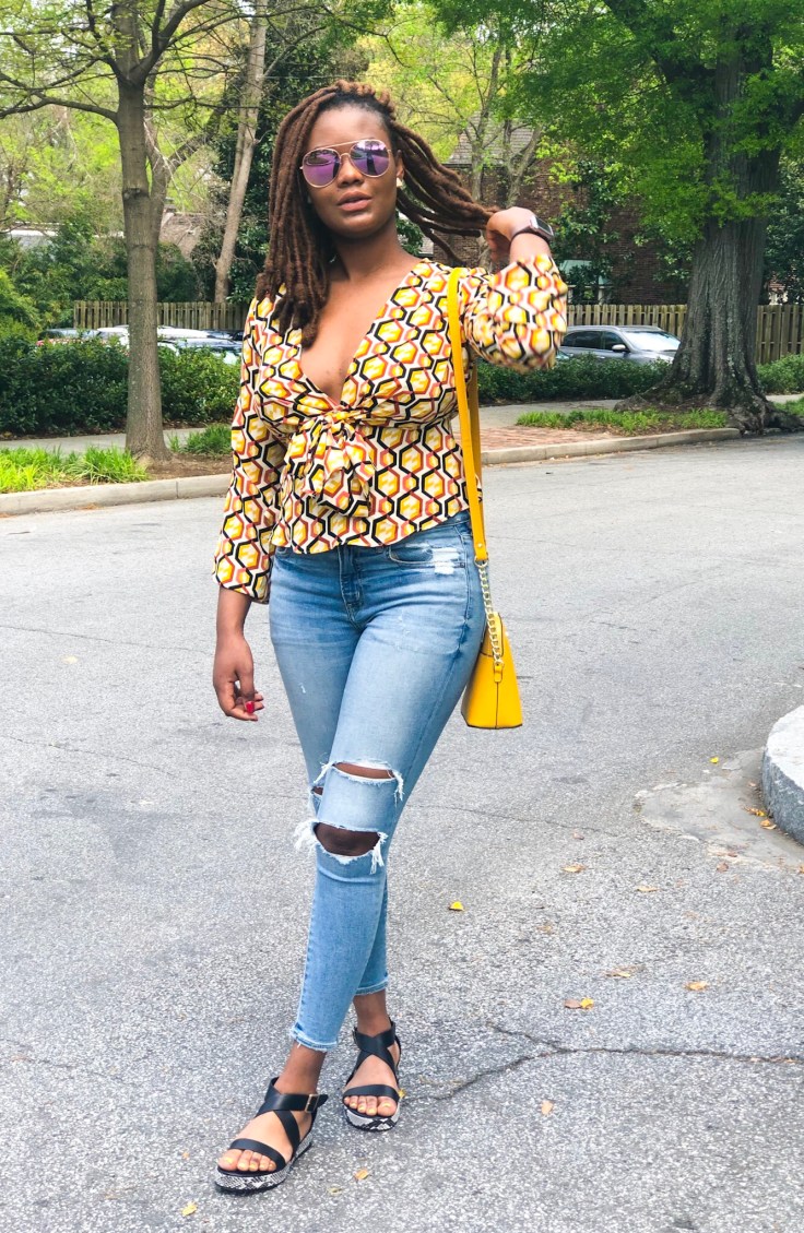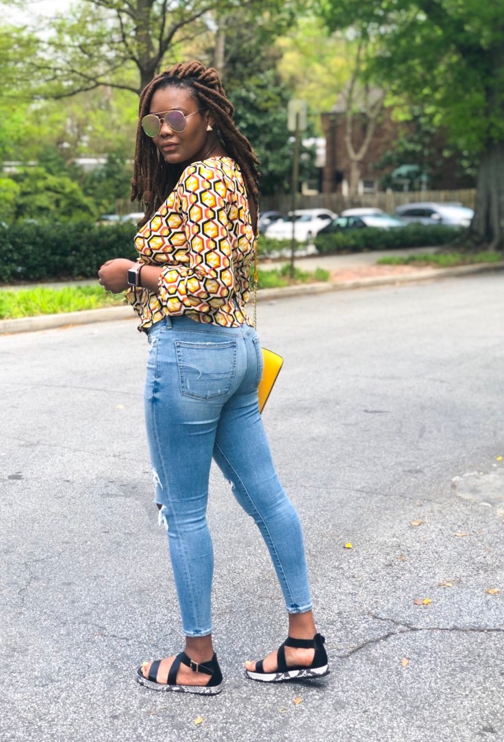 I made a lot of mistakes shopping for this trip but this outfit was not one of them. A random find on clearance at Forever21, this gorgeous boho top with a plunging neckline was made for my silhouette. I paired it with distressed jeans and platform sandals. This outfit was my favorite; it made me feel as romantic and free as I looked. This carefree look depicts a wearable commodity that counts me as one of the new generation of doers. I wore this outfit to brunch at The Hive in Buckhead, an establishment that is Ghanaian owned. Style woke and ready to warm fashion hearts, Atlanta served as my fertile ground for fashion this weekend.