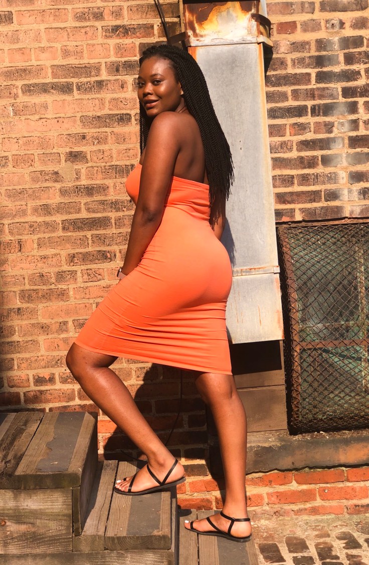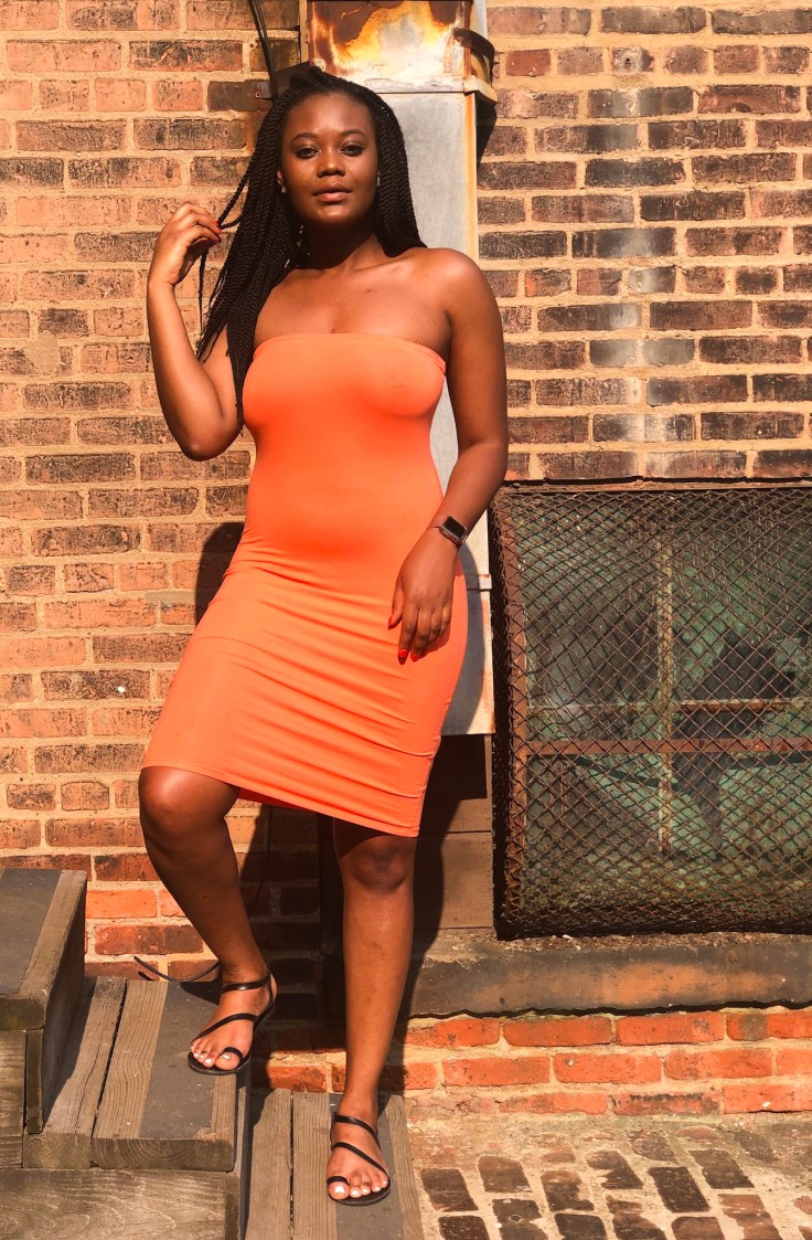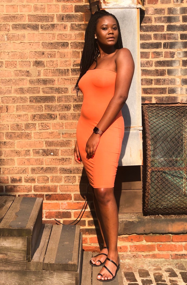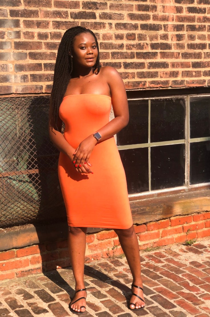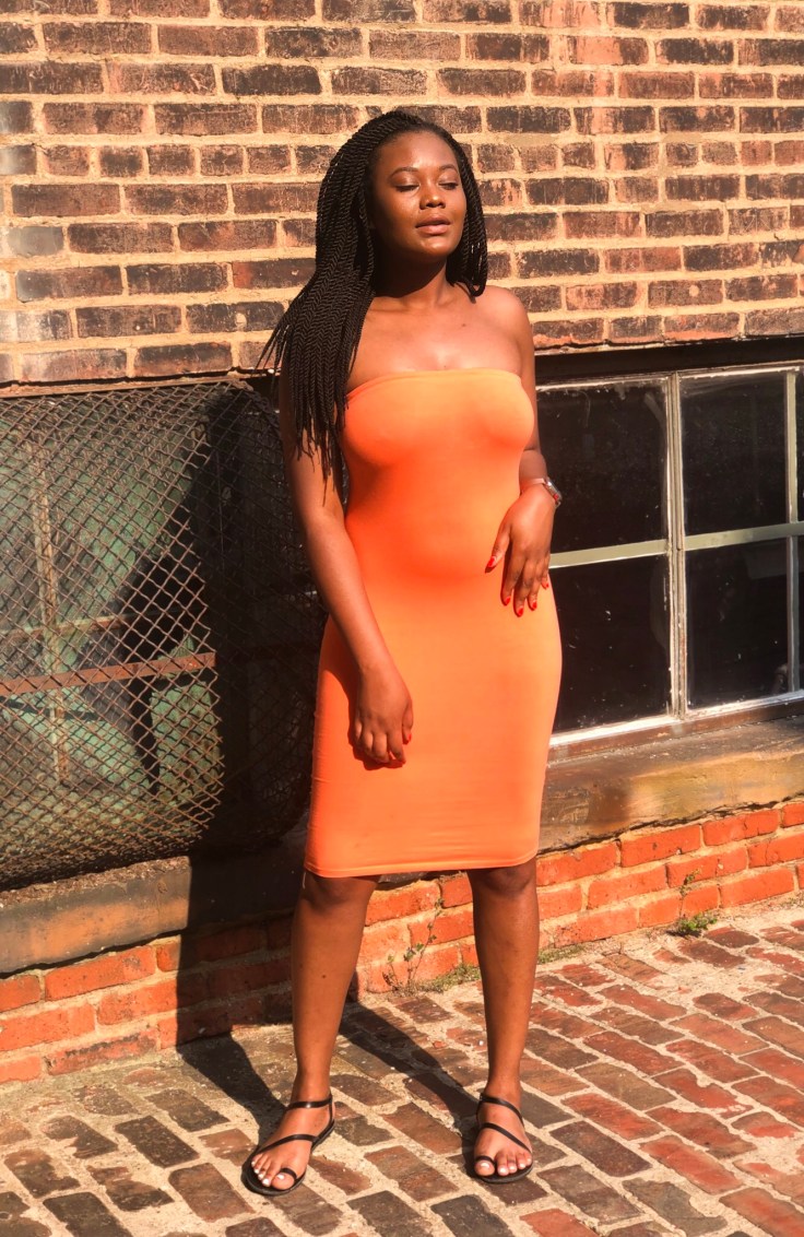 This post gives you an oranginal body type in turmeric orange. I decided to pair this gentle bodycon with a simple pair of black sandals and my golden brown skin. This hue embraced my shade of brown whilst the bodycon accentuated my every curve; almost too much if you ask my lens. Orange encompasses the burden of a brown girl. Behind this hue is a beautiful, regal shade that is disregarded until it is deemed useful. Yet it is no less an irreplaceable tone, it’s precious tint remains undefeated and shines without a care in the world. With a texture of royalty and feminine opulence, the fantasea within this shade is the perfect embodiment of every brown girl this bright and rich fashion season.
