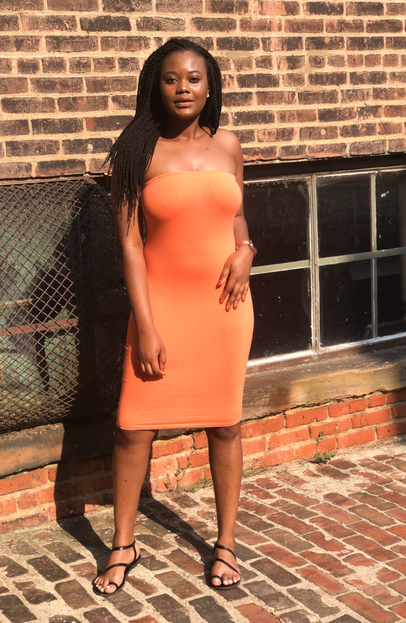This post gives you an oranginal body type in turmeric orange. I decided to pair this gentle bodycon with a simple pair of black sandals and my golden brown skin. This hue embraced my shade of brown whilst the bodycon accentuated my every curve; almost too much if you ask my lens. Orange encompasses the burden of a brown girl. Behind this hue is a beautiful, regal shade that is disregarded until it is deemed useful. Yet it is no less an irreplaceable tone, it’s precious tint remains undefeated and shines without a care in the world. With a texture of royalty and feminine opulence, the fantasea within this shade is the perfect embodiment of every brown girl this bright and rich fashion season.
