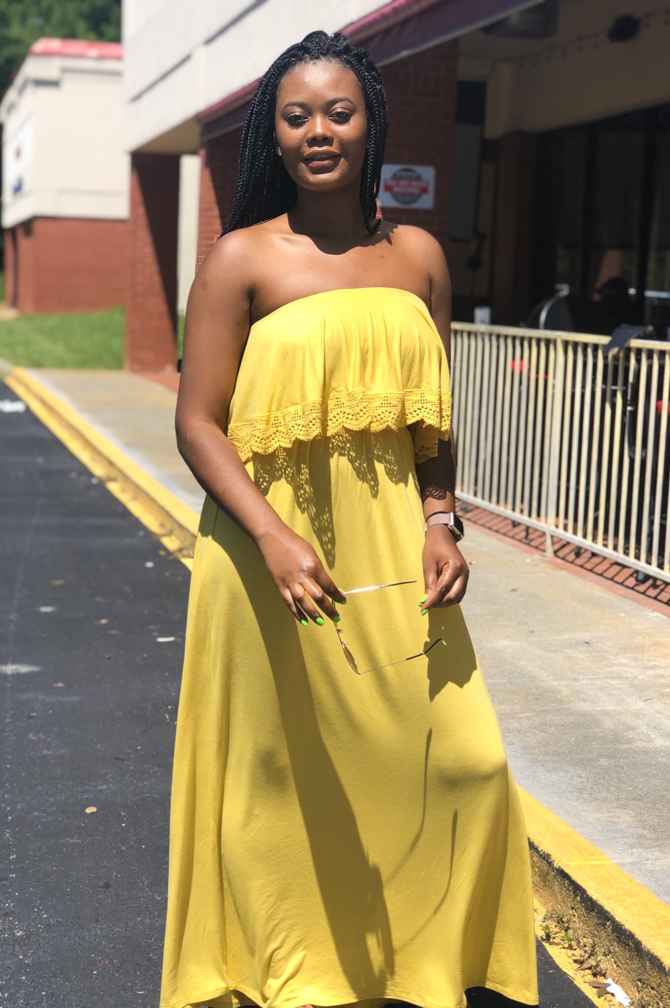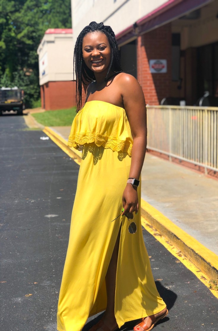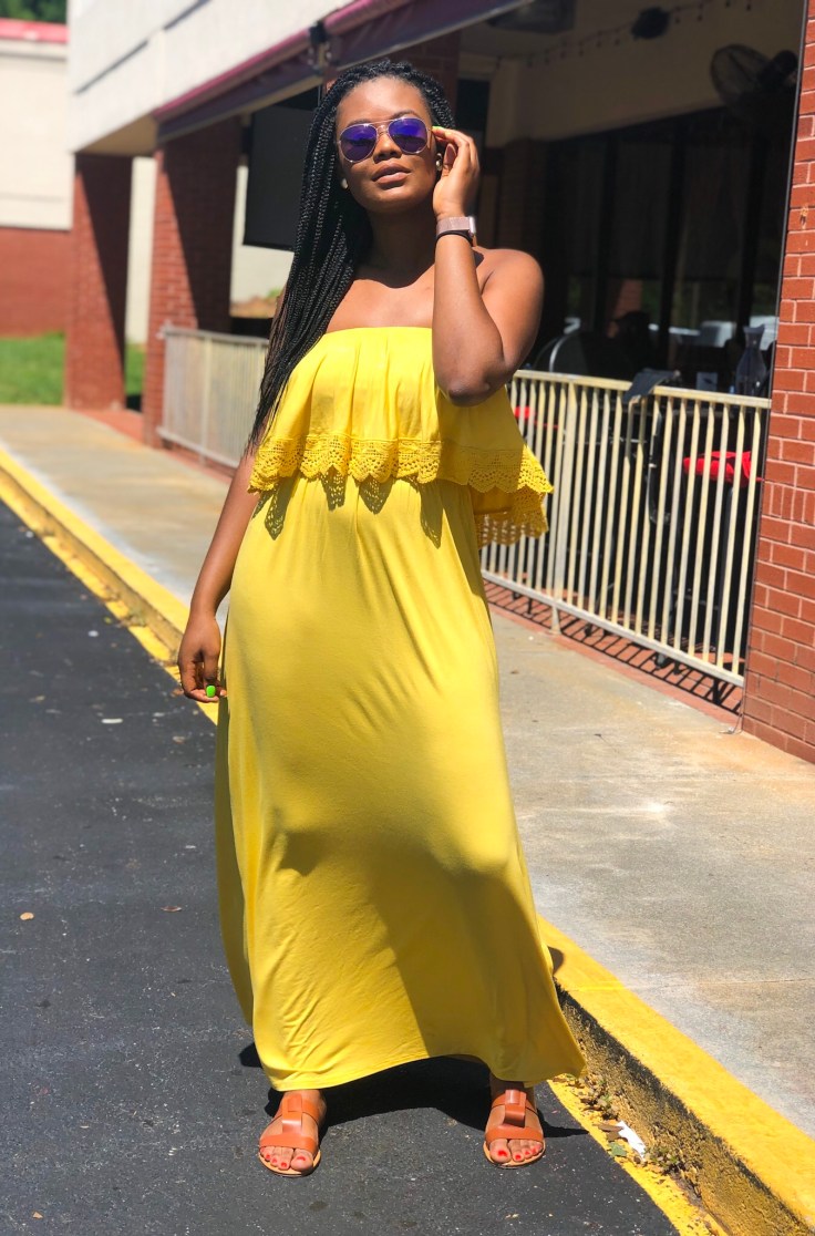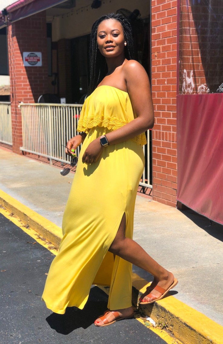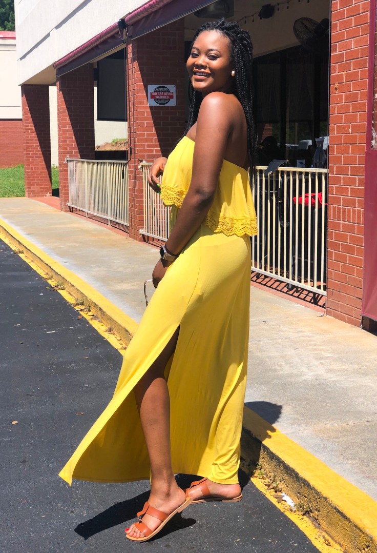 Within a couple of hours after arriving in ATL, I blessed my skin tone in this bright and fun sundress. I must say, yellow has never looked better. Buzzing with compliments, the sun was my biggest admirer. In an instant, I became the sun’s lover and yellows muse. A color of happiness, yellow attracts the attention I yearn for this summer. It brightens up a romantic mood, one that depicts the fact that black girls truly are magic. Hope you enjoyed my trick!