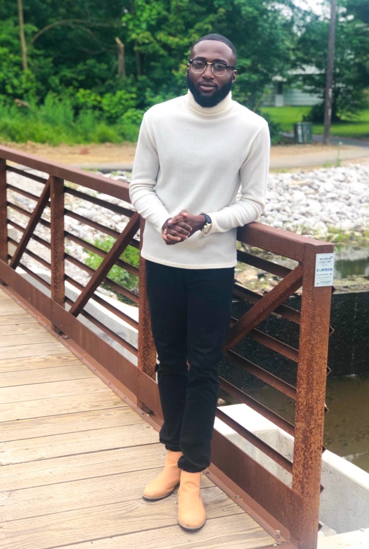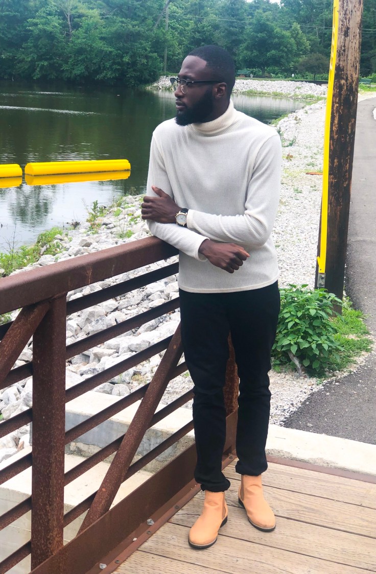 Noc city approached this casual style from the right angle, one that is tied together with his confidence. When it comes to fashion, well fitted clothes paired with the right accessories will keep your wardrobe sharp as a minimalist. Enoch understands that the smallest details, like matching your glasses to your watch, makes the biggest impact. The ultimate style accessory, his humble beard completely alters his look and makes a statement. It compliments his turtle neck as it accentuates his facial features. A break from stiff collars, this style is the new standard.