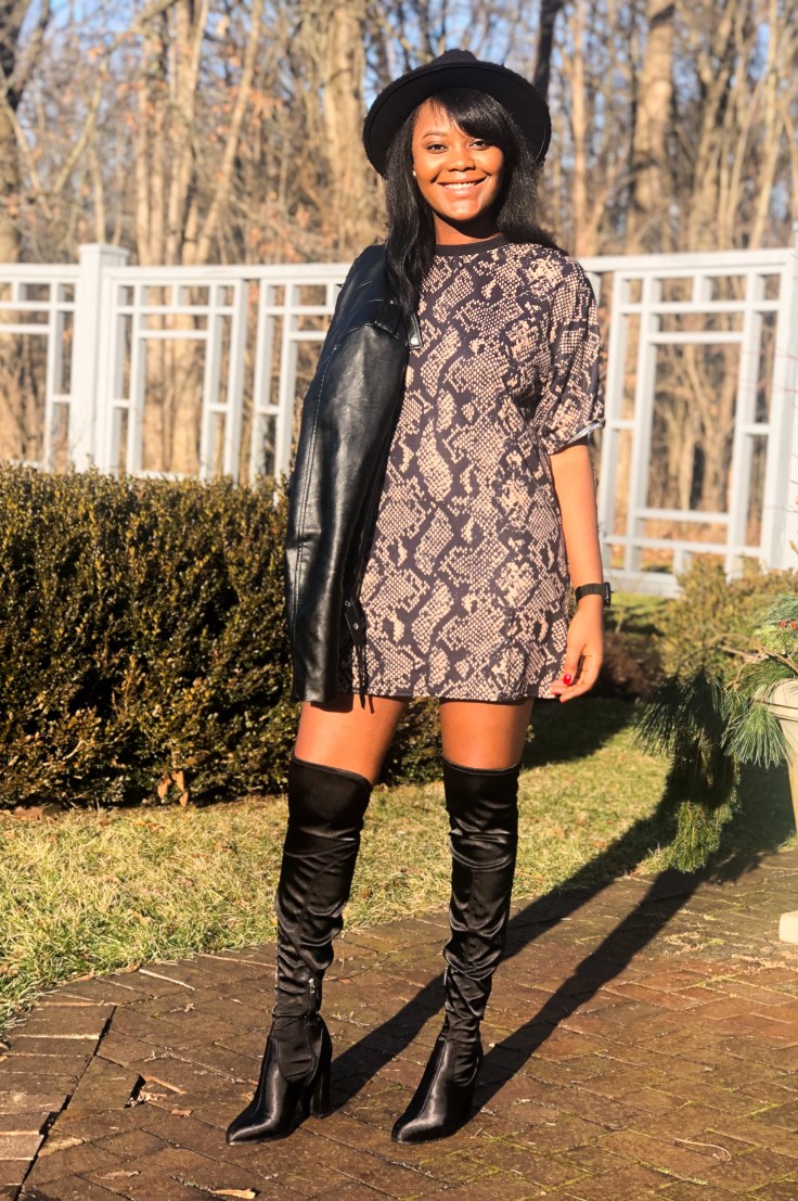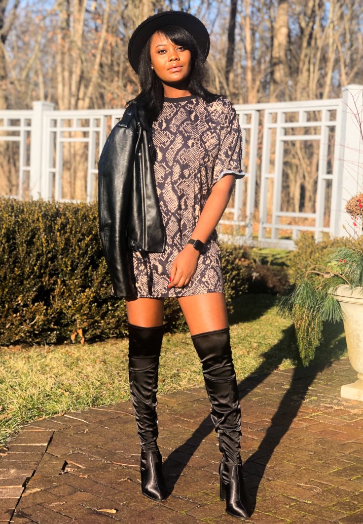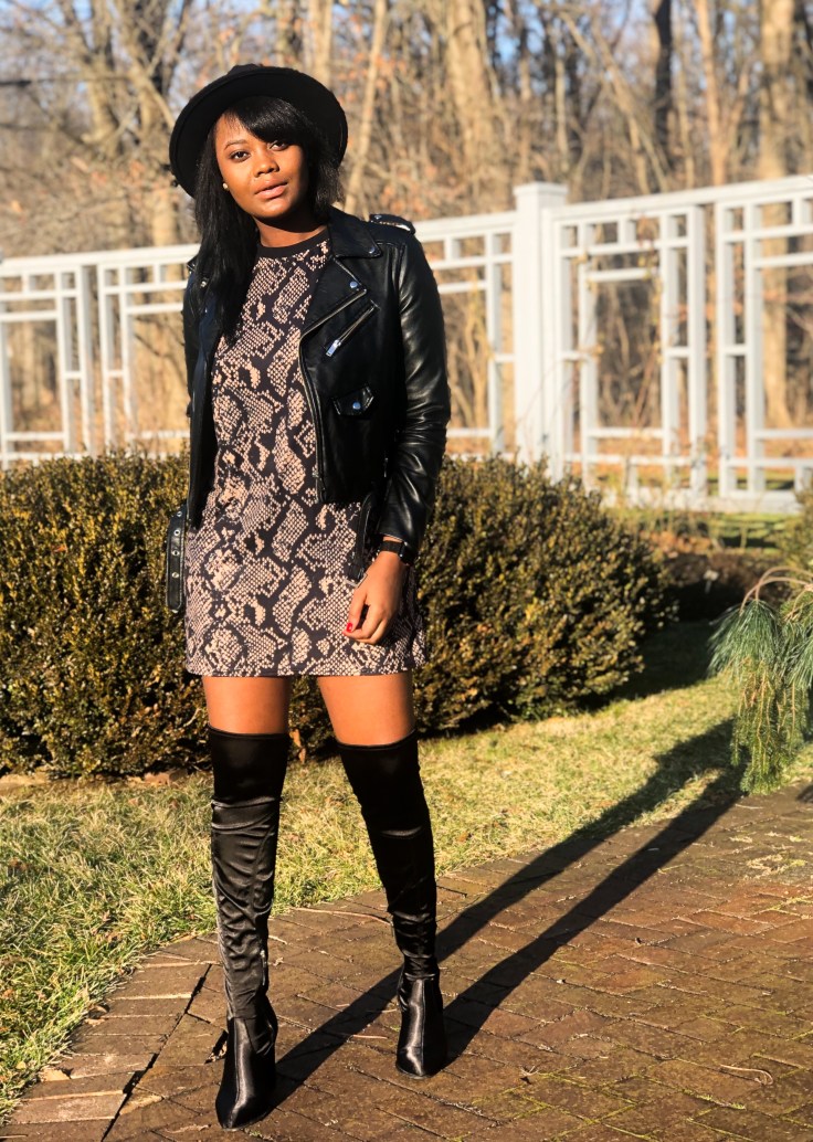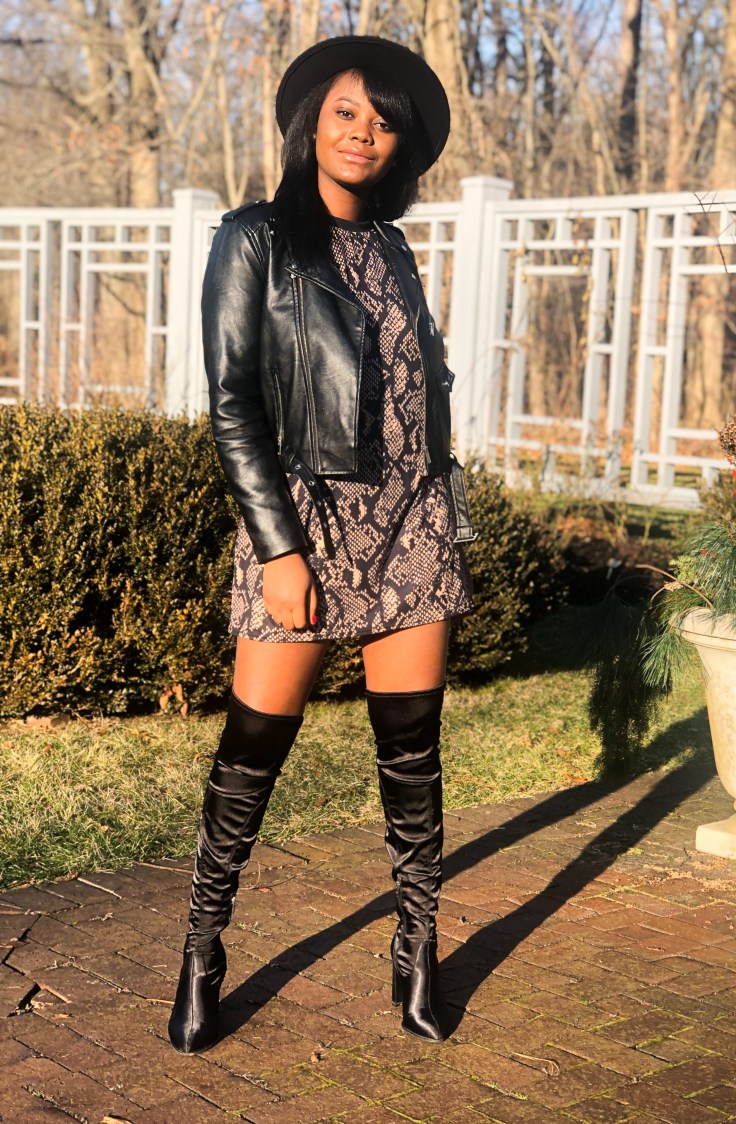 Fashion is my guilt pleasure; my mode of transport throughout the year. There are a plethora of styles to encompass every mood I switch in to. Not sequin-obsessed, I entered the new year in the wildest print of the season. 2019 I was a badass; I survived a lot and pushed myself further than imagined. Nothing says badass like a leather jacket, snake print, and thigh high boots. Making a fashion statement doesn’t always have to be bedazzles and bright hues. Sometimes the personality of the person in the clothes is bright yet elegant enough.