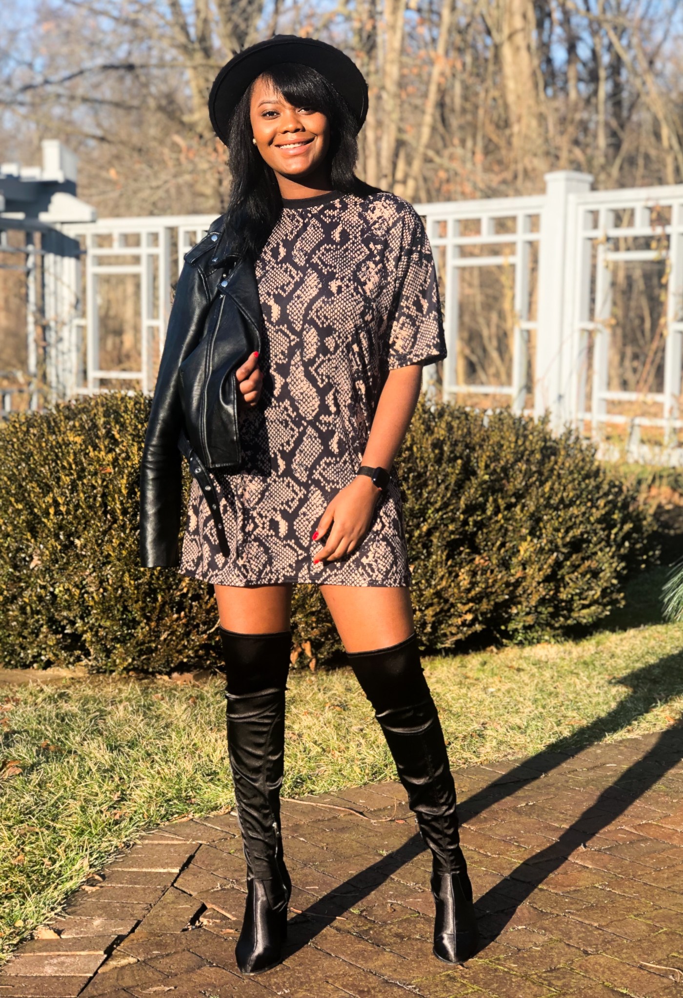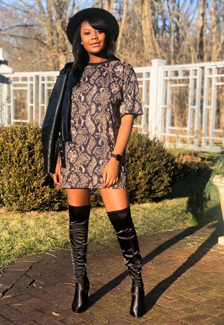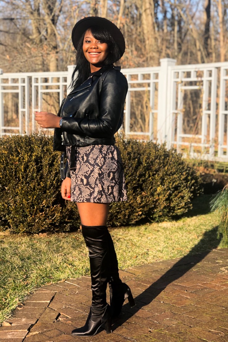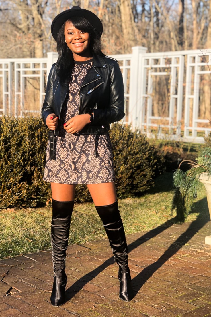 Fashion is my guilt pleasure; my mode of transport throughout the year. There are a plethora of styles to encompass every mood I switch in to. Not sequin-obsessed, I entered the new year in the wildest print of the season. 2019 I was a badass; I survived a lot and pushed myself further than imagined. Nothing says badass like a leather jacket, snake print, and thigh high boots. Making a fashion statement doesn’t always have to be bedazzles and bright hues. Sometimes the personality of the person in the clothes is bright yet elegant enough.