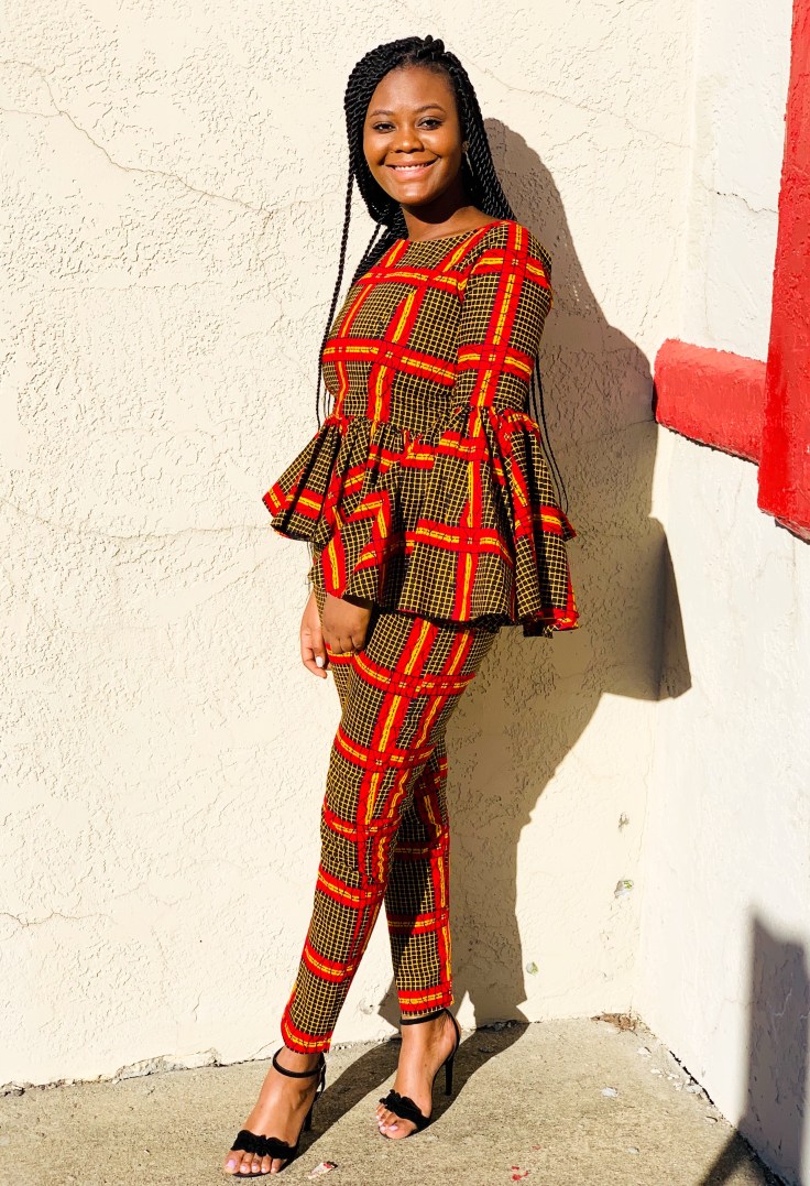 During my recent trip to Ghana, I decided to challenge those odds. I had a collection of different styles made using Ankara print. The riskiest of my custom collection is this one sleeve top with matching pants two piece set. It’s hard to get a flattering pair of Ankara pants or jumpsuit as the fabric itself doesn’t mold around ones shape like how regular fabrics do. But against all odds, I love this two piece. The pants could be better but the Ankara infused flare sleeve top is all this design needs to claim its African identity. This style is perfect for winter days like this when the sun finally comes out. It sets a precedent that you’re ready for whatever mood the weather throws at you.