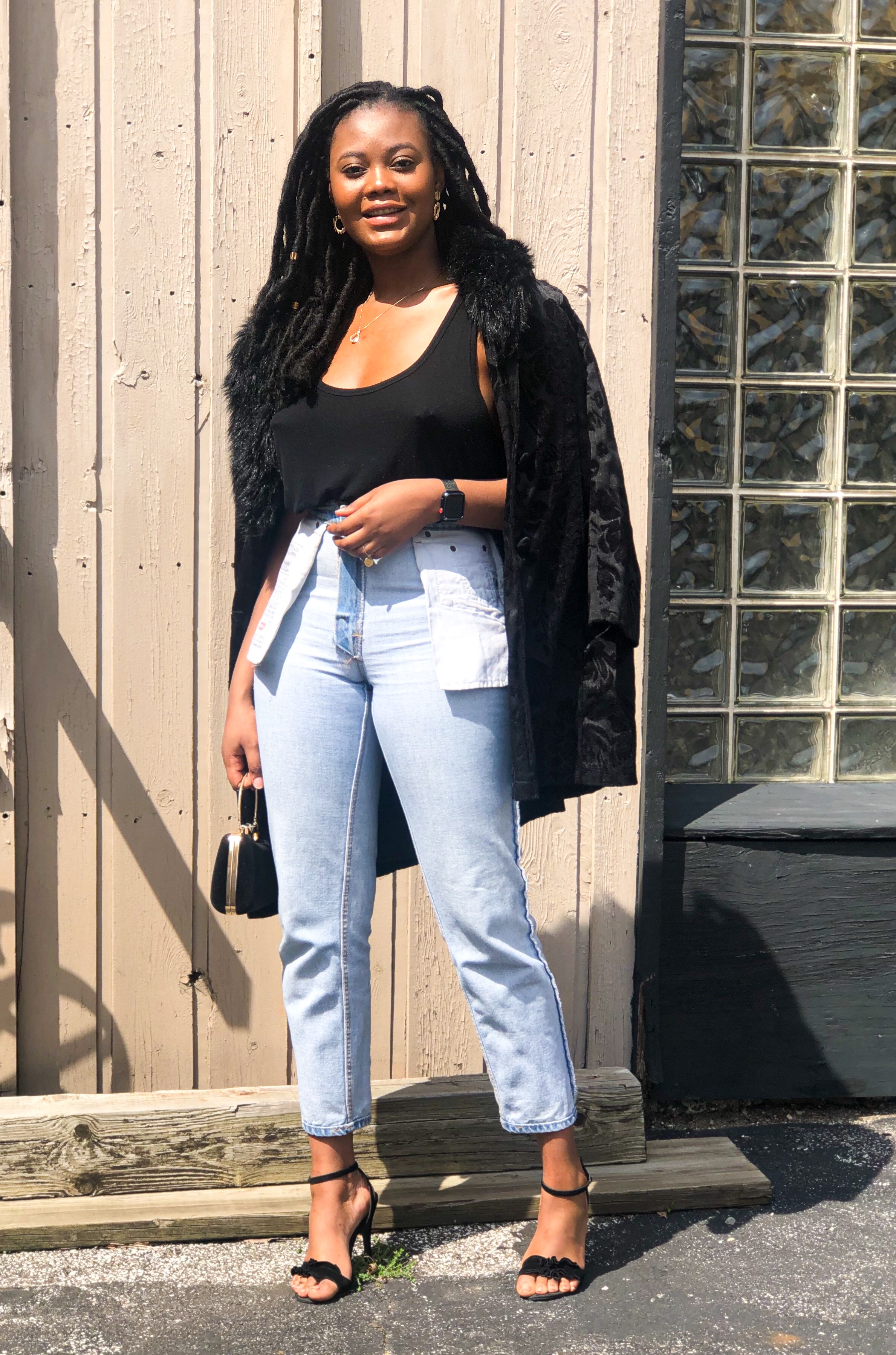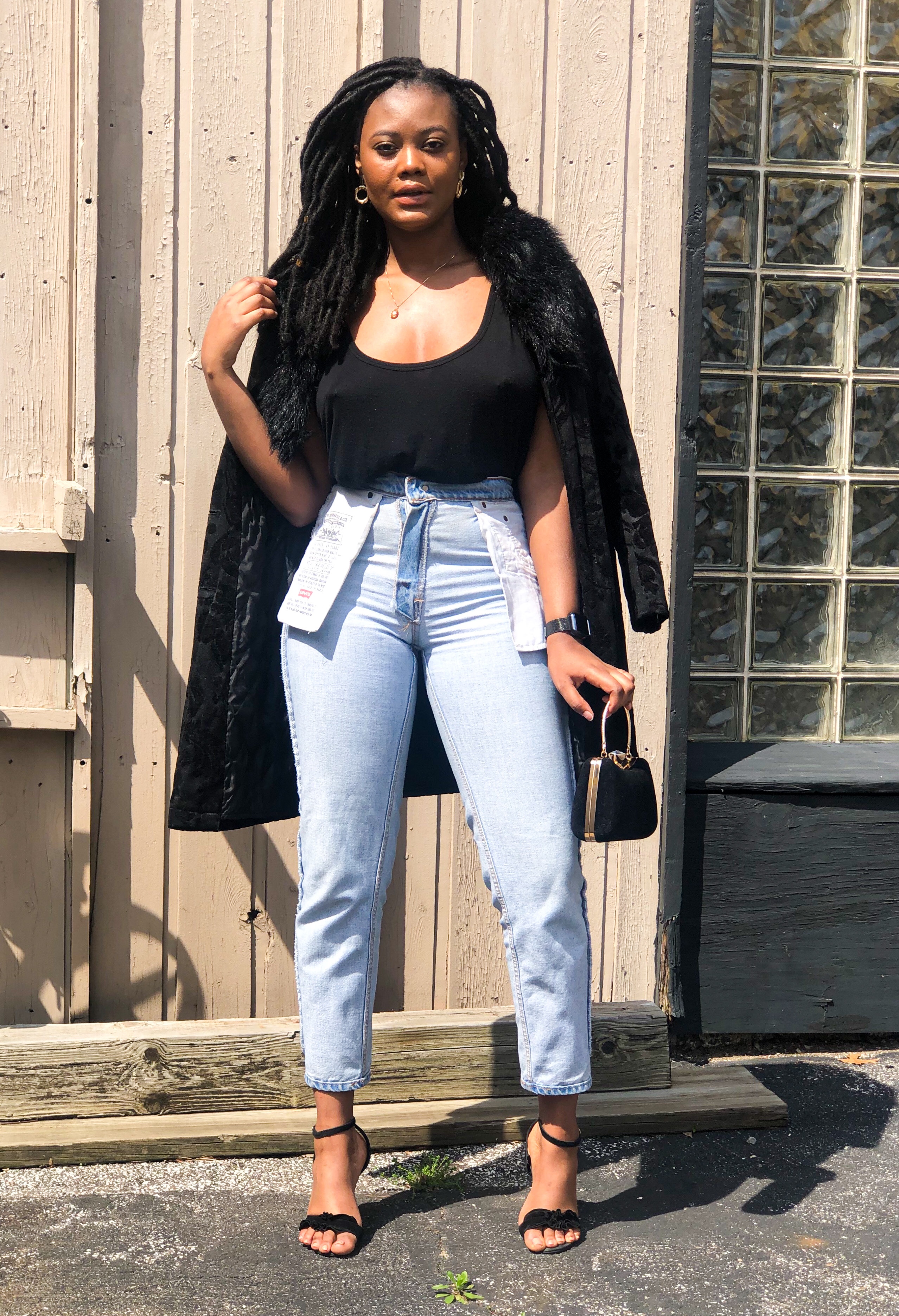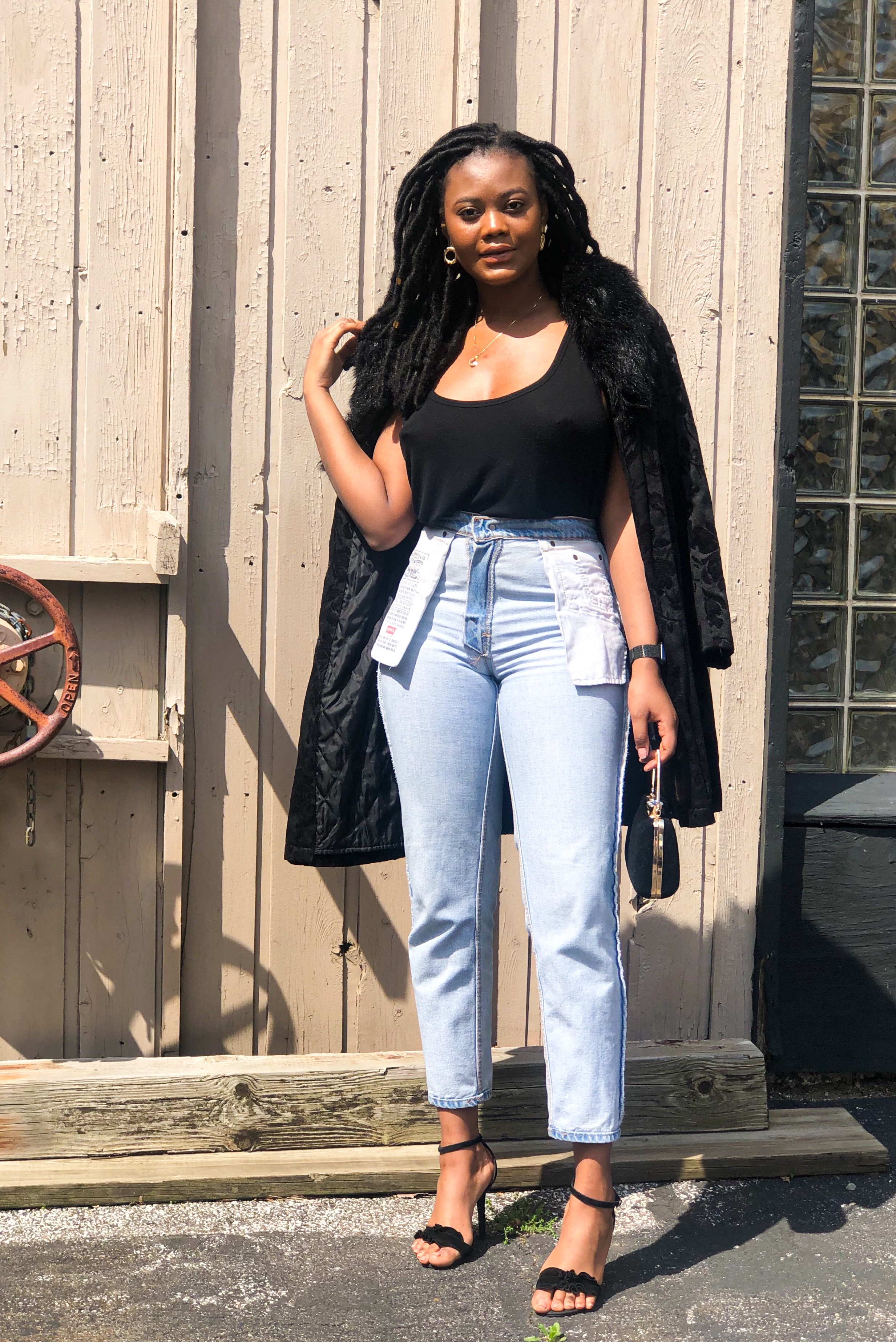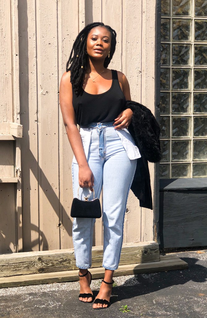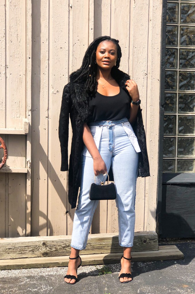 If you do decide to try out this new style, start with boyfriend fit or mom jeans. Also, opt for putting your regular jeans inside out to test your perception on the style before making the purchase. I chose to dress up my favorite Levi’s mom jeans with a loose black tank, printed fur coat, and black heels. If you know my fashion heart, you should know about my love affair with denim. They hold ones shape while complimenting an outfit in ways other bottoms can’t. Denim is the best textile in my opinion and we must do everything to protect it. Even if that means being so desperate for new trends that we take this old casual stable and turn it inside out.