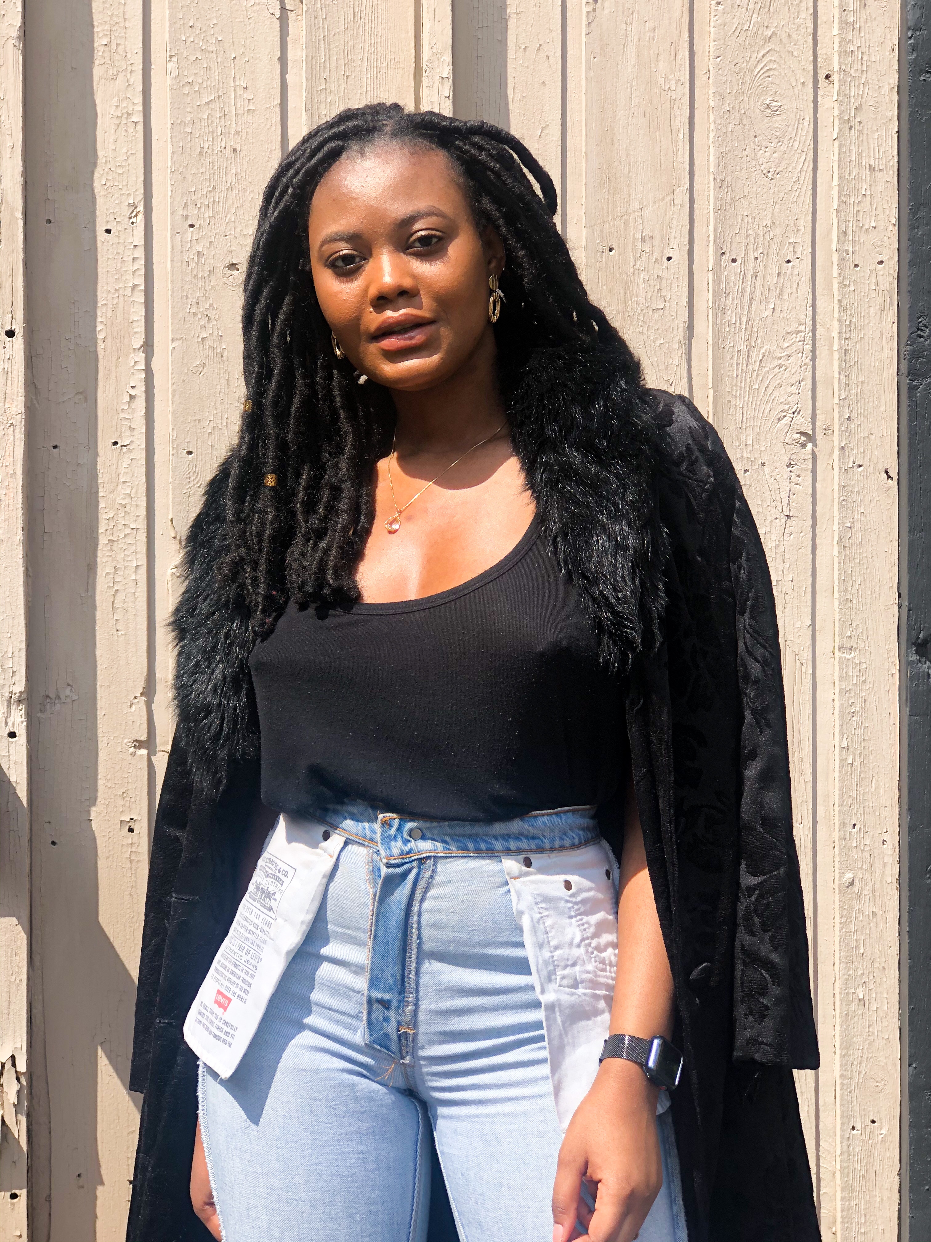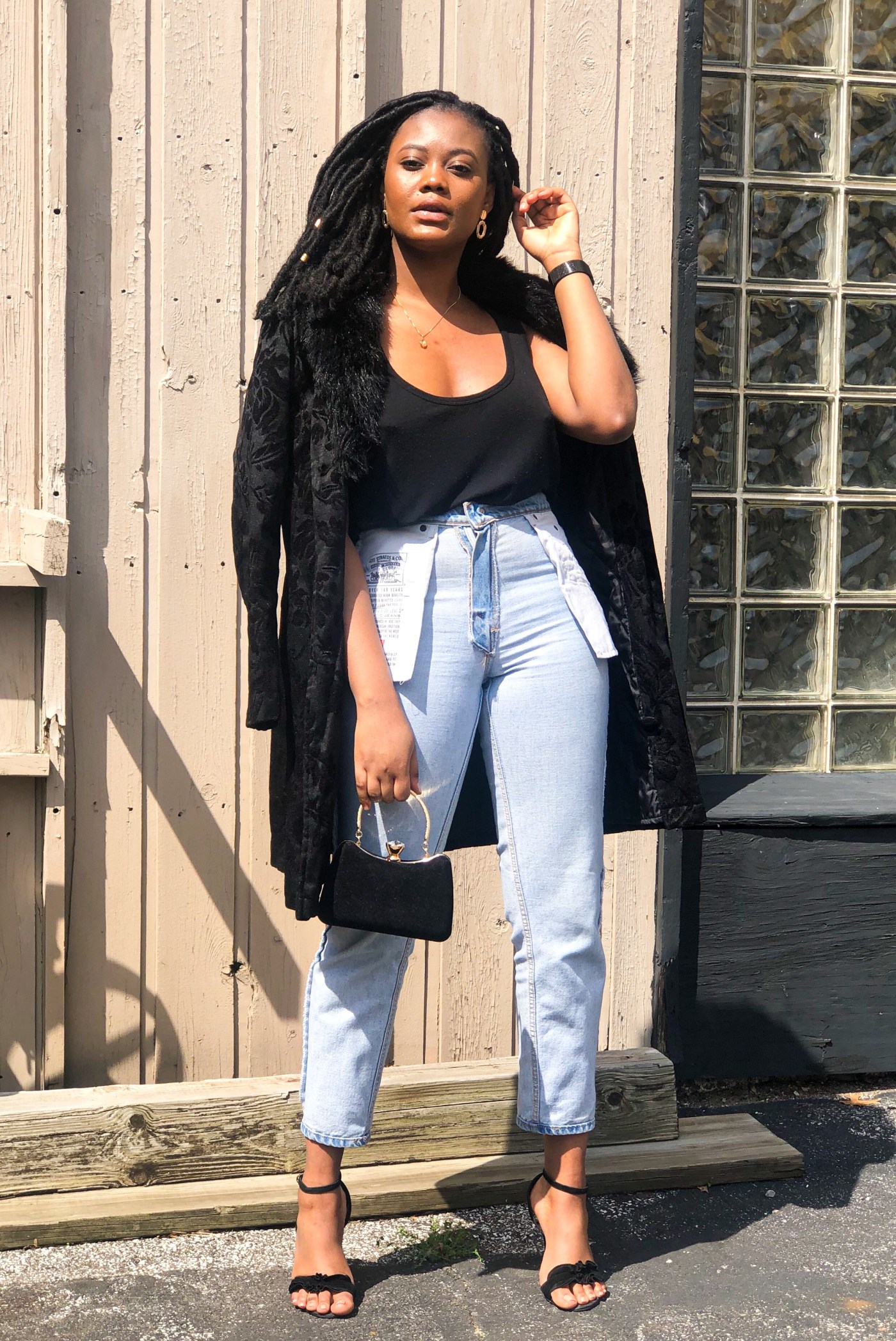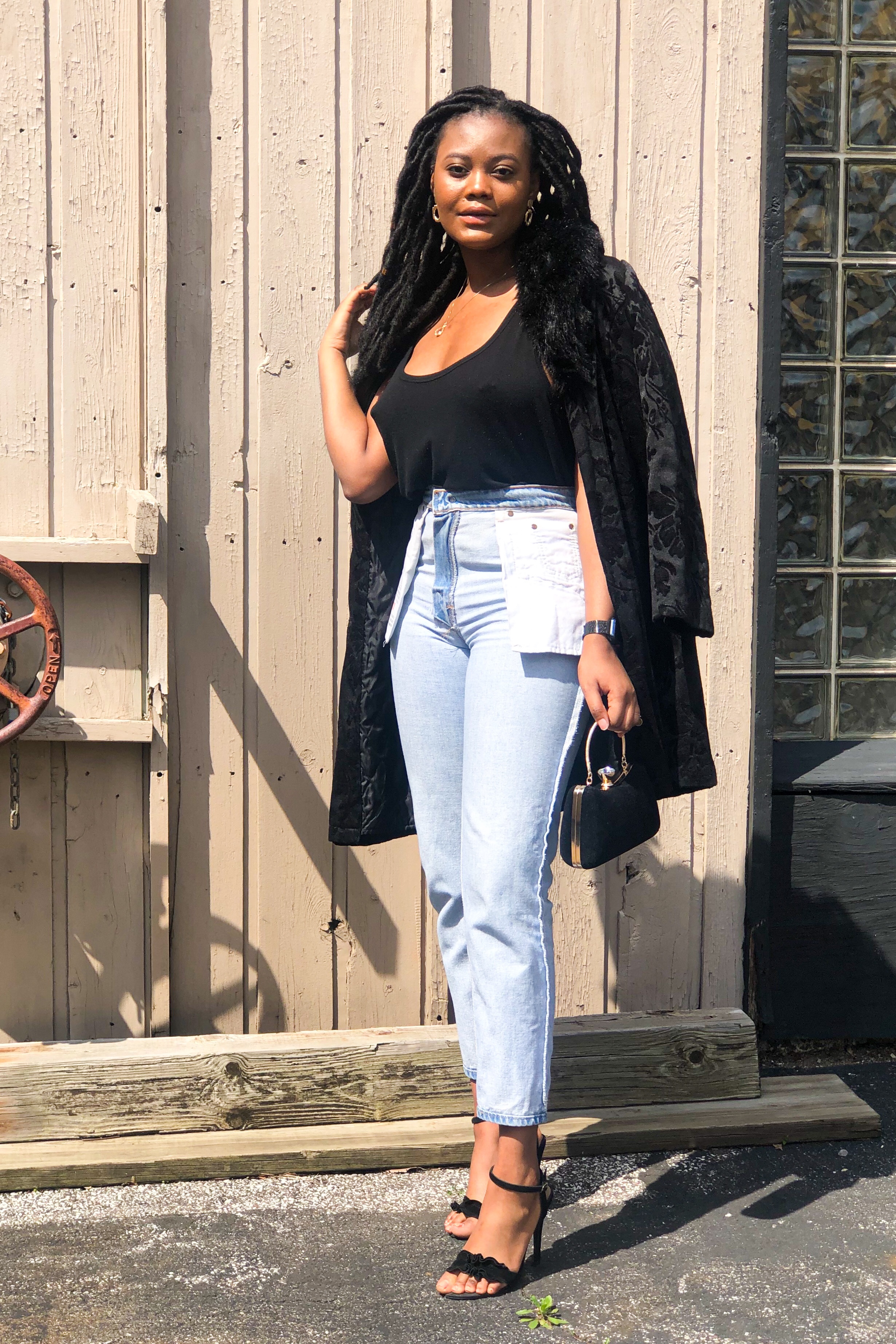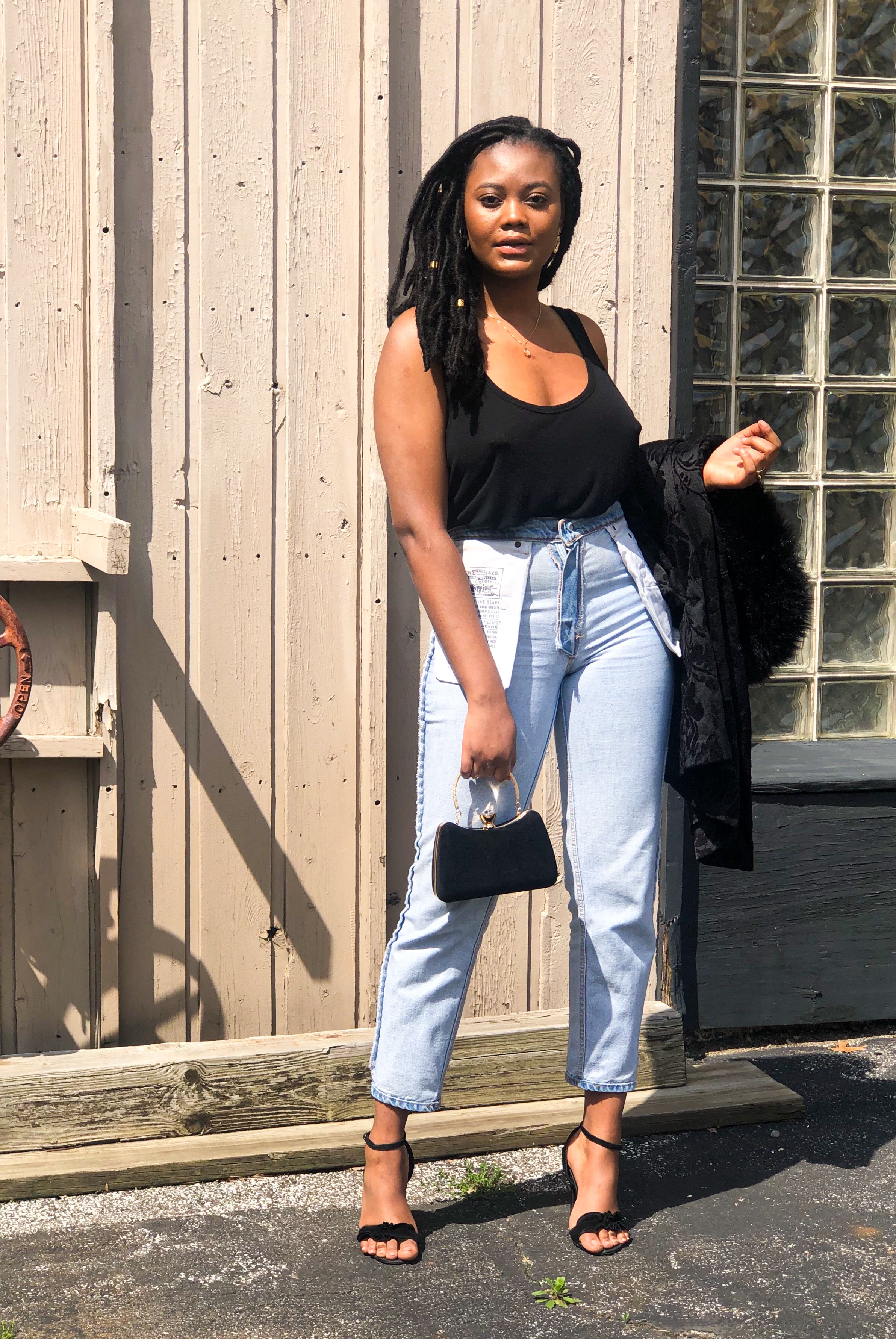 If you do decide to try out this new style, start with boyfriend fit or mom jeans. Also, opt for putting your regular jeans inside out to test your perception on the style before making the purchase. I chose to dress up my favorite Levi’s mom jeans with a loose black tank, printed fur coat, and black heels. If you know my fashion heart, you should know about my love affair with denim. They hold ones shape while complimenting an outfit in ways other bottoms can’t. Denim is the best textile in my opinion and we must do everything to protect it. Even if that means being so desperate for new trends that we take this old casual stable and turn it inside out.