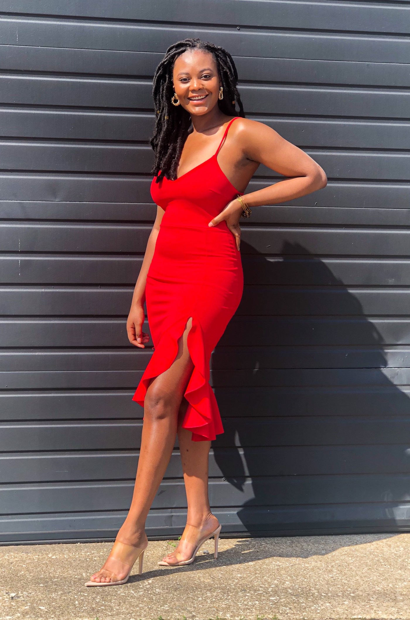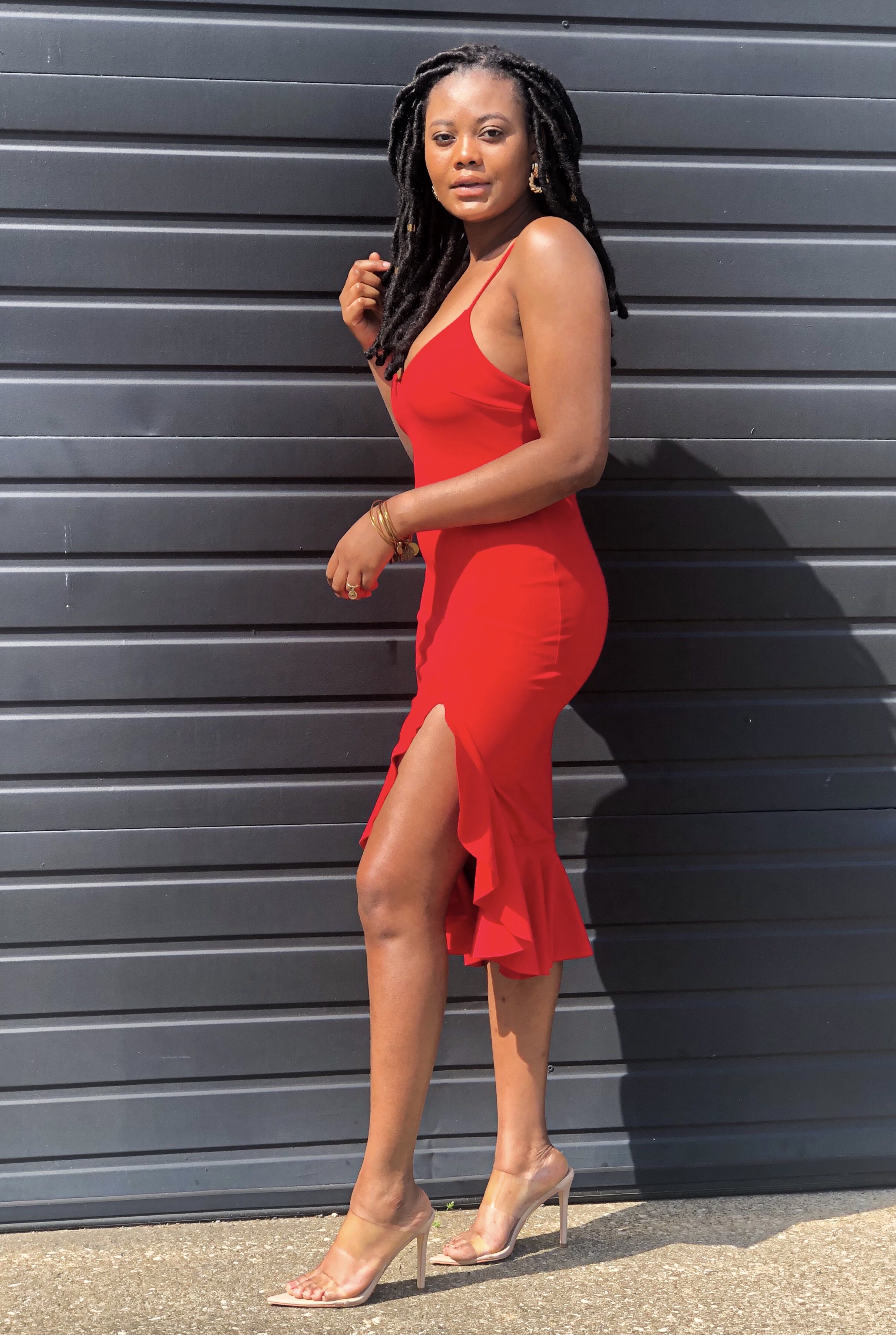 This post is dedicated to a true showstopper in fashion and my best friend Becca’s favorite color; Red. I styled a ruffle spaghetti strap dress with minimal accessories to ignite my energy during this quarantine. The only mistake I made with this dress was shooting in a public area. With stares, honking, and whistles this color actually intimidated me … but for only a second. For a moment, I underestimated its power but a moment later I focused on what it signifies, boldness and confidence. This color is featured on my skin because it is everything but boring. One must be careful when styling the color of passion. Too much and the power can get to your head, too little and what’s the point?