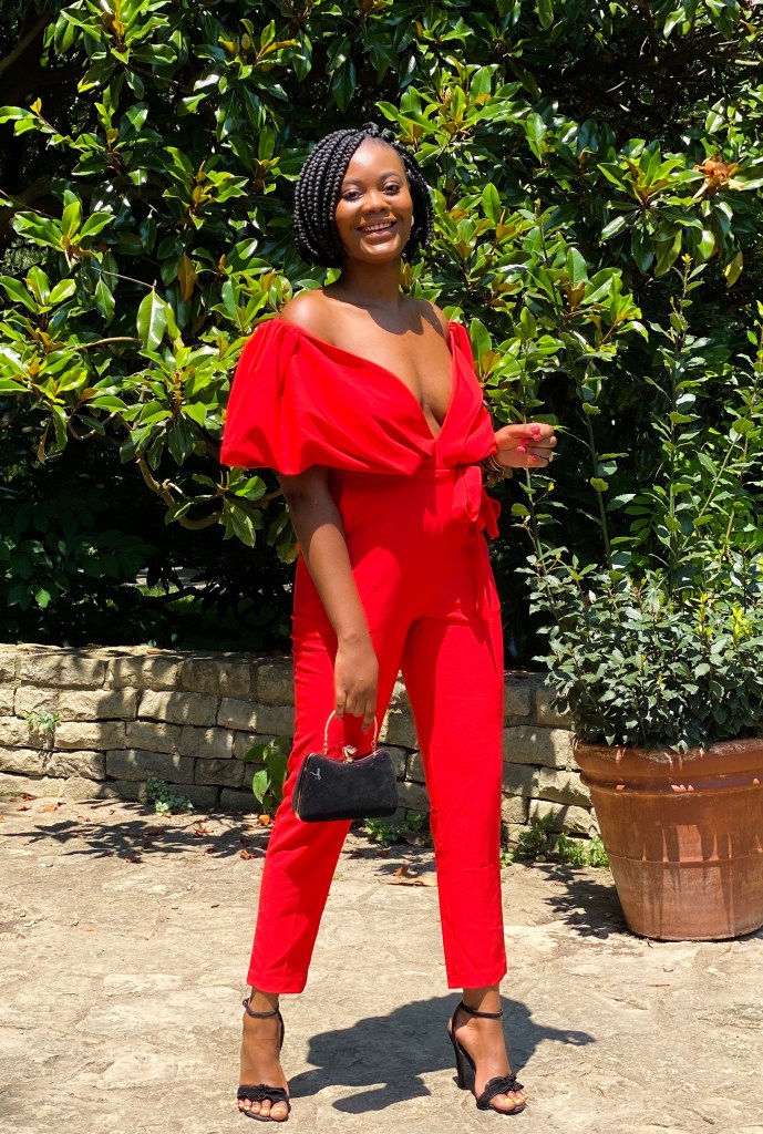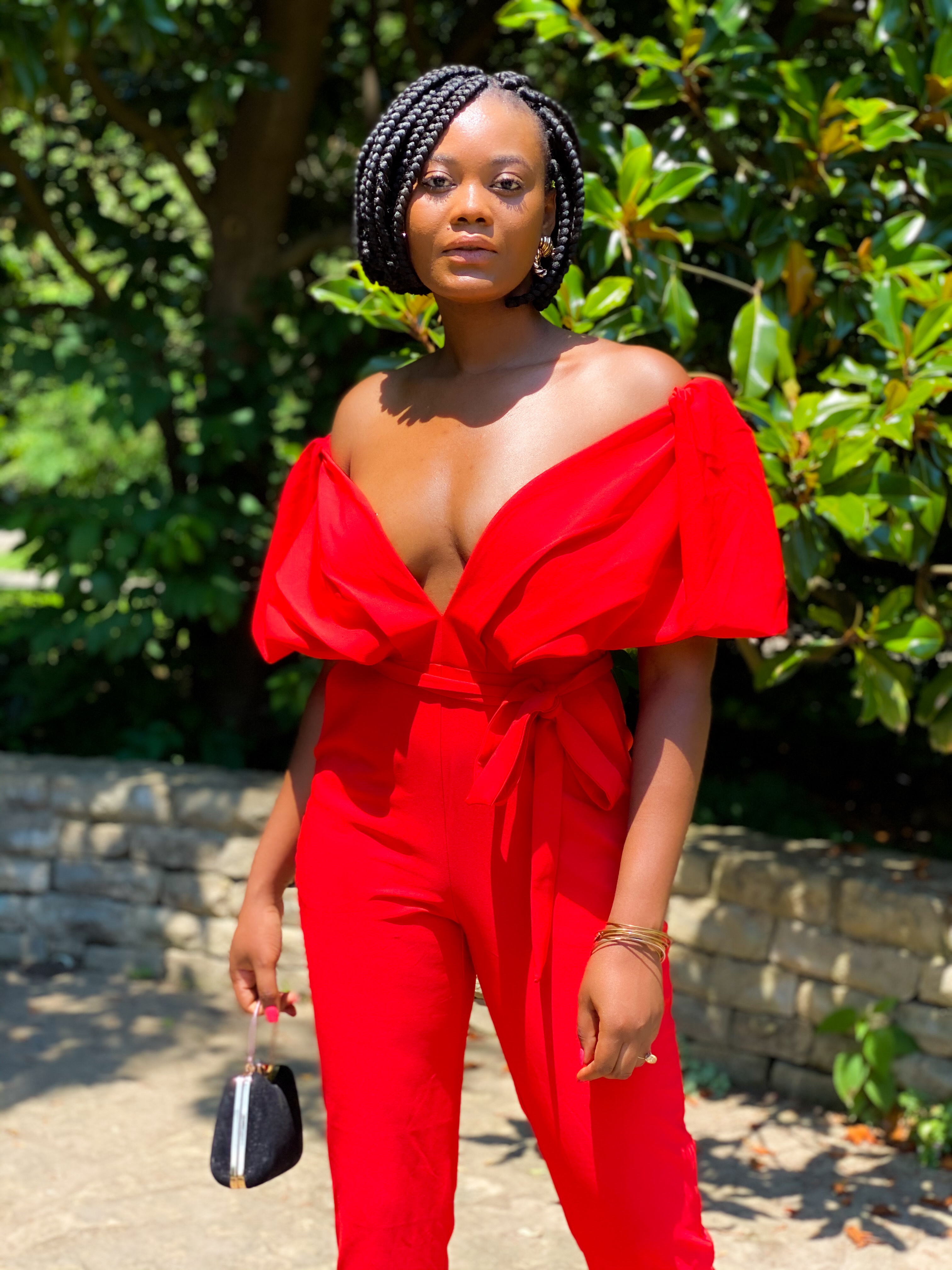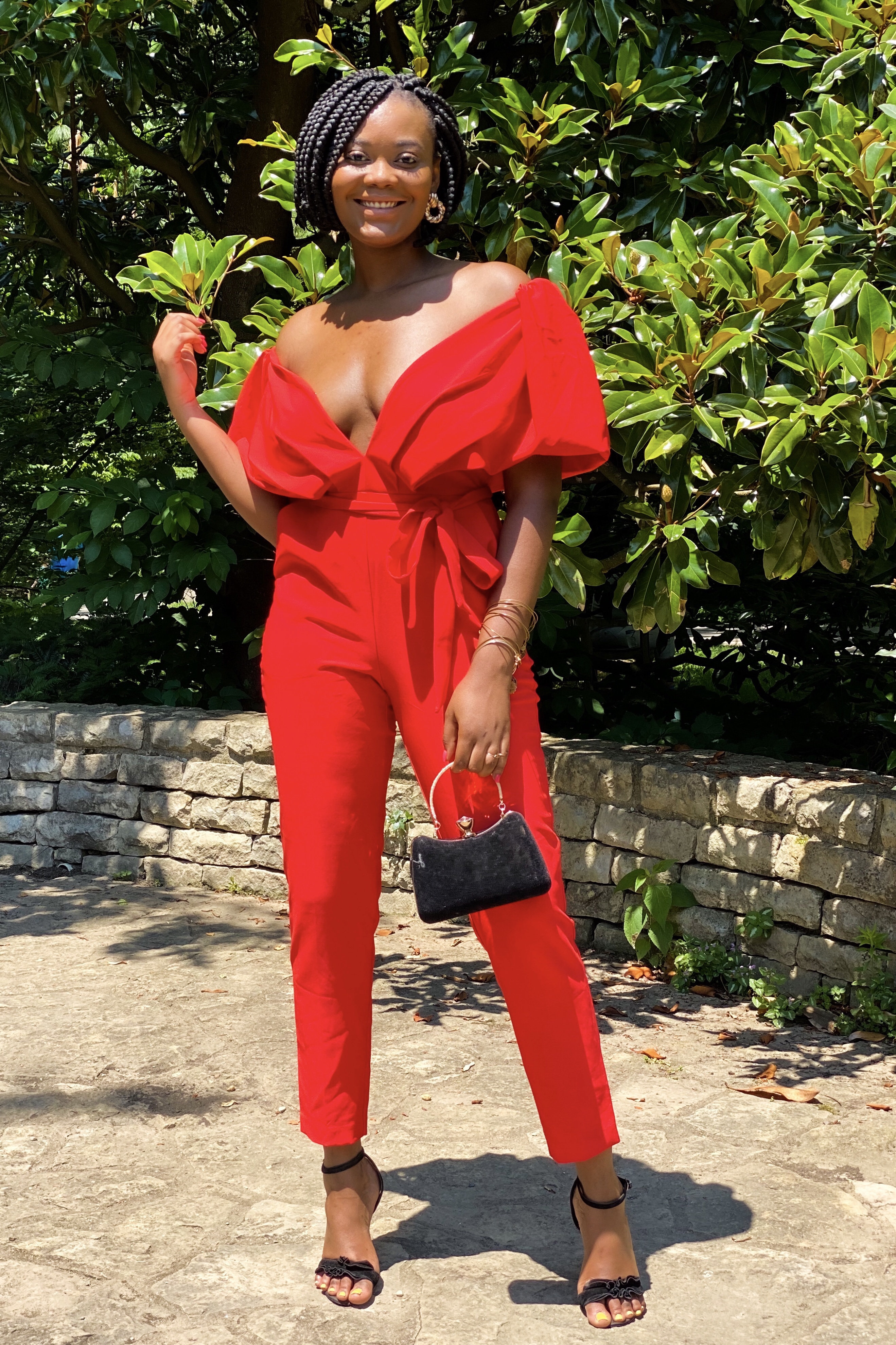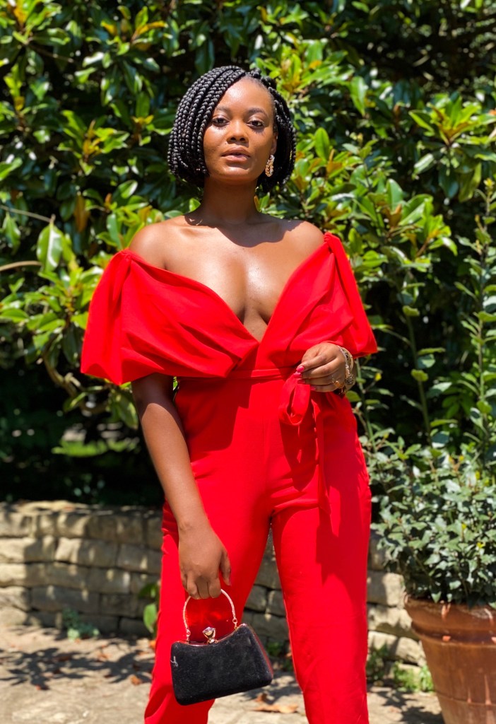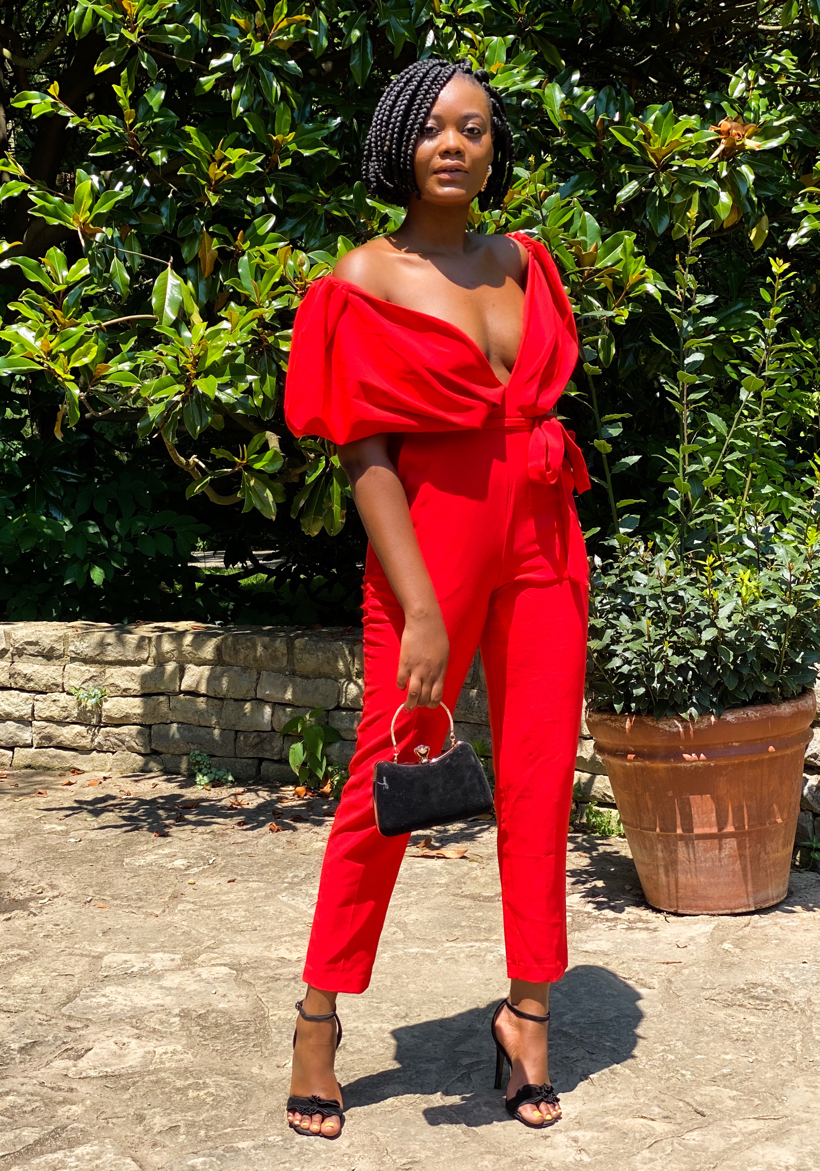 Maintaining a fashionable lifestyle is high maintenance. To help utilize the time I set aside for fashion wisely, I cut back on the time I spend styling my hair for looks. I’ve found that when you minimize your daily hairstyle routine by selecting protective hairstyles that naturally look great, it leaves you more time and effort to put into your outfit of the day. My outfit of the day is this elegant jumpsuit from New York & Co. My effortlessly opulent hairstyle fell just where I need it to accentuate my collar bones in this jumpsuit. The bright, romantic style of this jumpsuit amps up the impact for my hair. Both styles, hair and fashion, coupled together to compliment and flaunt a brown girl.