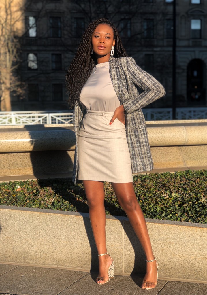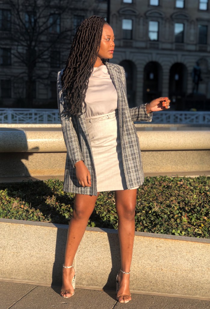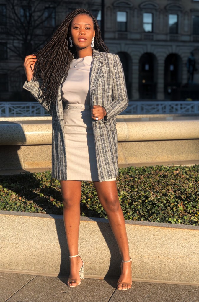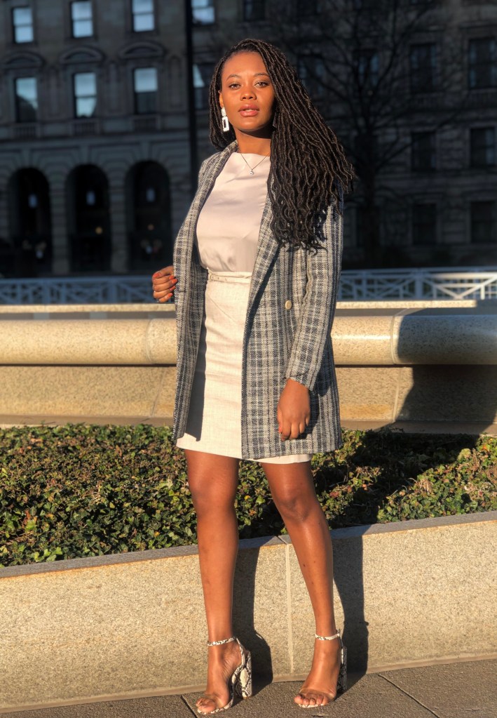 After nine months in quarantine, I am still trying to get more wear out of my summer clothing. This look features a gray long sleeves top and skirt set from H&M. A Zara trench coat was added as a winter bonus. To build a bit more on this simple look, I added statement earrings and snake print sandals. The beauty of fashion is that there are no set rules. If you are stubborn like I am, you will figure out ways to incorporate any attire on your fashion heart into a piece that can endure even the harshest weather. The skirt on this look serves as an ode to the summer while the long coat is a welcome gift to winter weather.