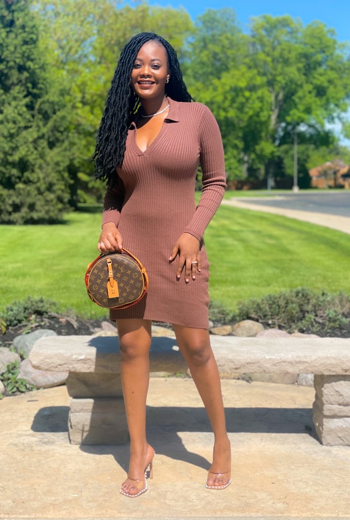 I have mastered what looks good on my body, but I’m in the experimental phase of what complements my skin. From chocolate brown to caramel, my mahogany dream is dipped in chocolate. My fashion thesis is that brown hues on a black girl equal magic, as I have discovered that a kiss of cocoa brings almond joy to the fashion heart. Say hello to deep browns, chocolate hues, and aromatic cinnamon in its glory. Feed your sweet tooth in an ideal style that warms your skin tone. Mine is rooted in coco butter and sealed with a Hershey’s kiss.