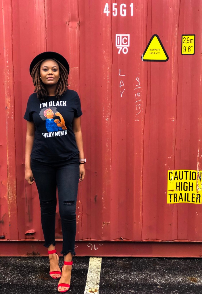 “I’m Black Every Month” T-shirt Similar| Jeans Similar | Heels Similar